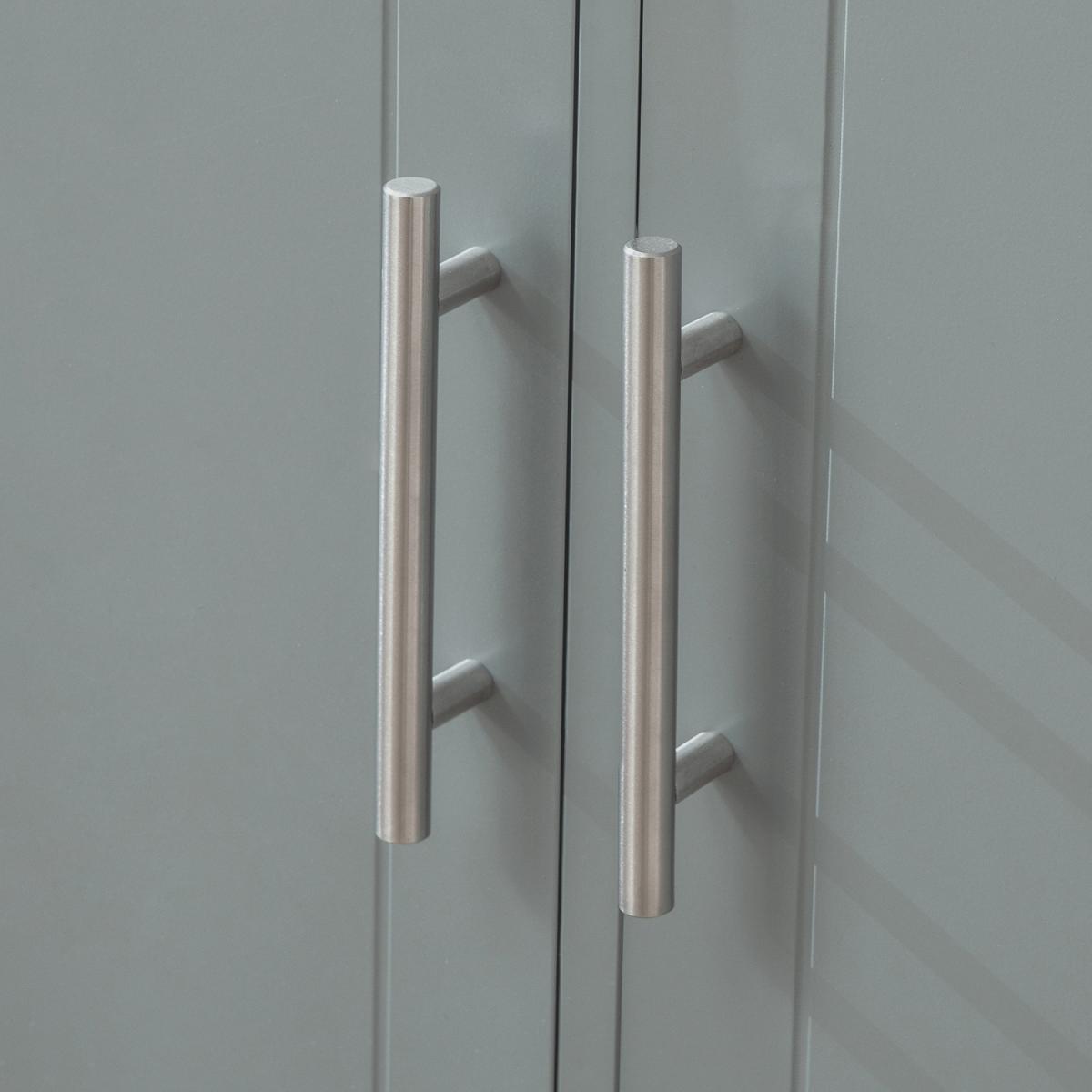 This modern design kitchen trolley is designed for various storage spaces and durable usage. The worktop made of good quality stainless steel and MDF provides plenty of space to store and prepare food. 2 drawers, 1 cupboard with 2 internal adjustable shelves, 3 side shelves and 1 kitchen roll holder provide ample storage space for you. There are 3 round cross bars on the side shelf. They prevent the items from falling to the ground.