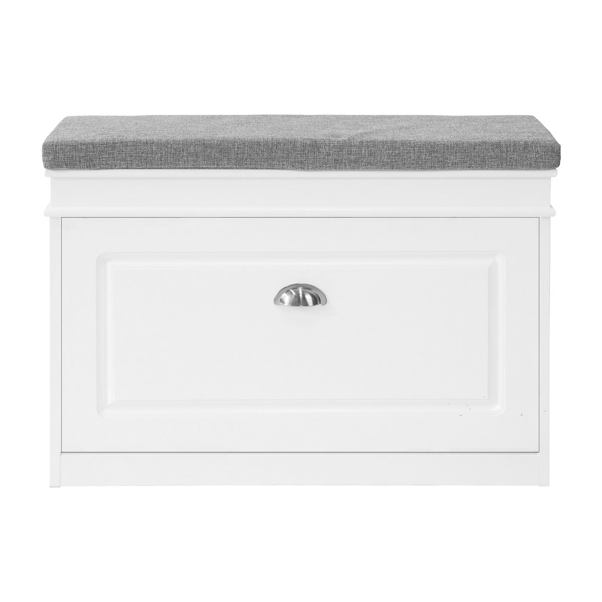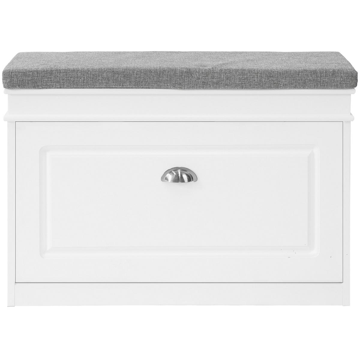 Modern design shoe cabinet with soft padded cushion, good choice for hallway, living room and bedroom. It consists of storage for several shoes in one handy flip down section beneath cushioned seat area. There is one board in the flip-drawer, which is removable for setting distance due to different sizes of shoes. The seat cushion which is removable is ideal for comfortable sitting while putting on and taking off shoes. This shoe cabinet will blend perfectly with your modern or traditional decor.
