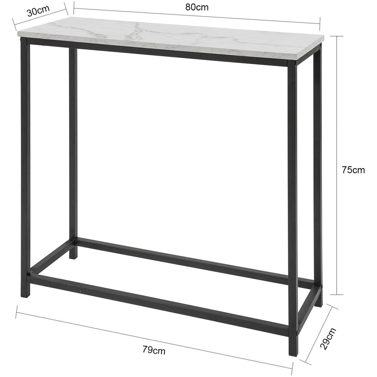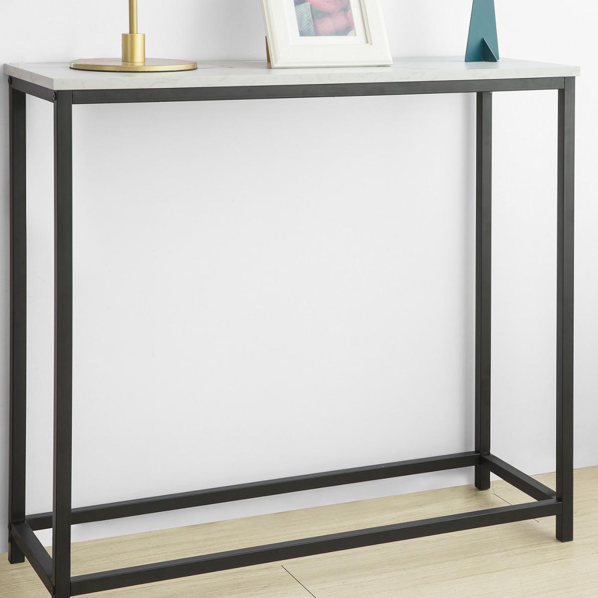 The sleek narrow lines of this entryway wall table make it the perfect space-saving storage display solution for any apartment, home or office. A diverse and contemporary product would be suitable for a variety of locations, like a hallway, living room and office. Made of high-quality particle board with marble effect printed and black powder-coated steel frame. The simple lines and subtle modern style will give a contemporary twist to the focal point of any living room.