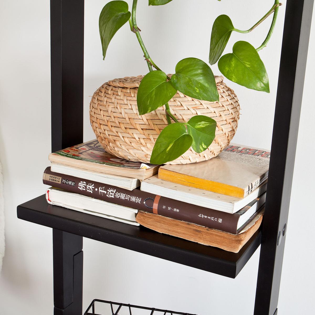 I’m a big fan of this sleek black ladder shelf - its slim frame makes it ideal for tight corners in a hallway, bathroom or living room without eating up precious floor space. It suits modern, Scandi and industrial interiors equally well, thanks to its clean lines and neutral finish. For styling, keep the look airy by alternating low stacks of books with potted greenery or small ceramics. Use a woven basket on the lowest tier to hide odds and ends, and reserve the top shelf for a delicate plant or framed photo. This approach balances function and form, giving you storage that feels curated rather than cluttered.