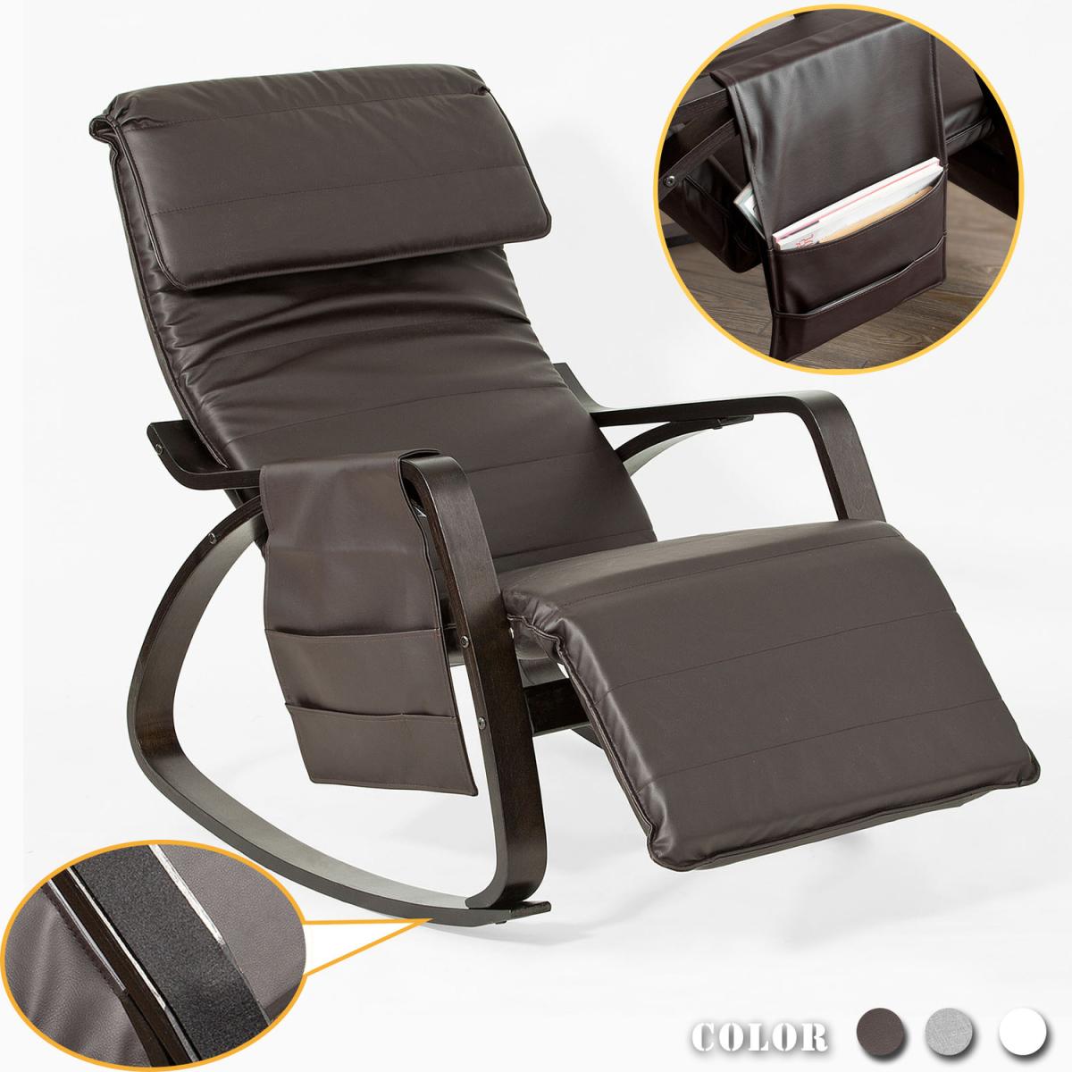 The combination of trendy design and high seating comfort makes this rocking chair a popular piece of furniture. A solid frame made of plywood provides the necessary stability. The comfortable cover is removable, washable, and guarantees the highest level of comfort. With this rocking chair, it is perfect for relaxing on a book or during a TV evening. The footrest can be adjusted with five inclinations, so you can optimally adjust your sitting position. A side pocket included to keep books, magazines, glasses, phones, etc. Mats on the bottom of the chair leg to prevent the floor from damage (self-adhesive). It comes in a flat pack. Self-assembly required.