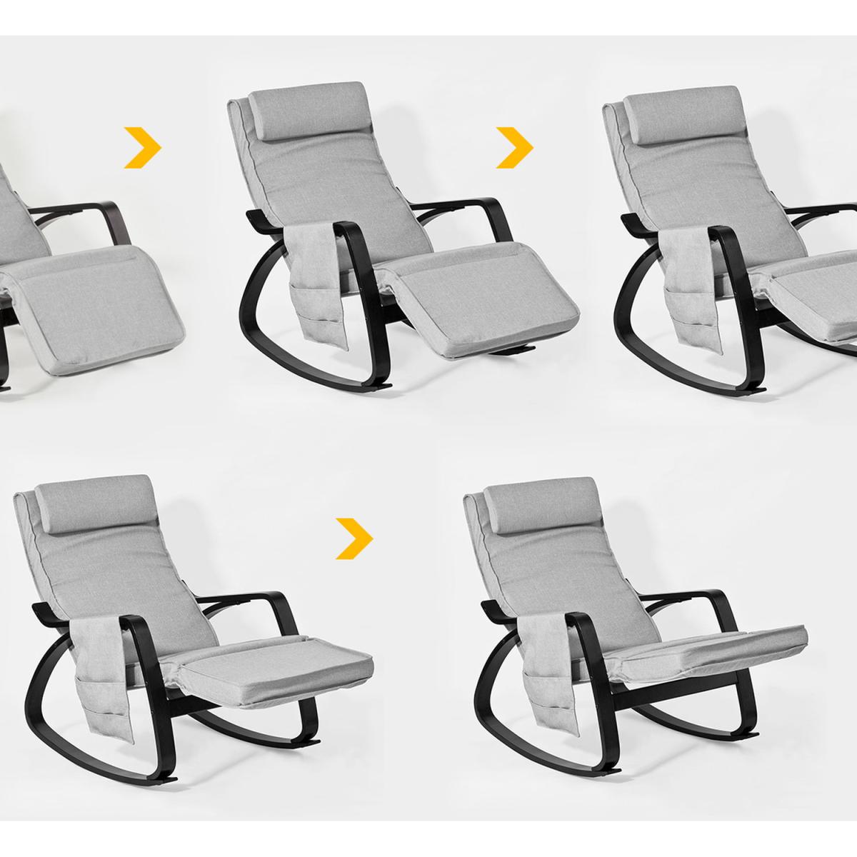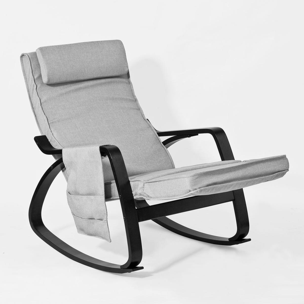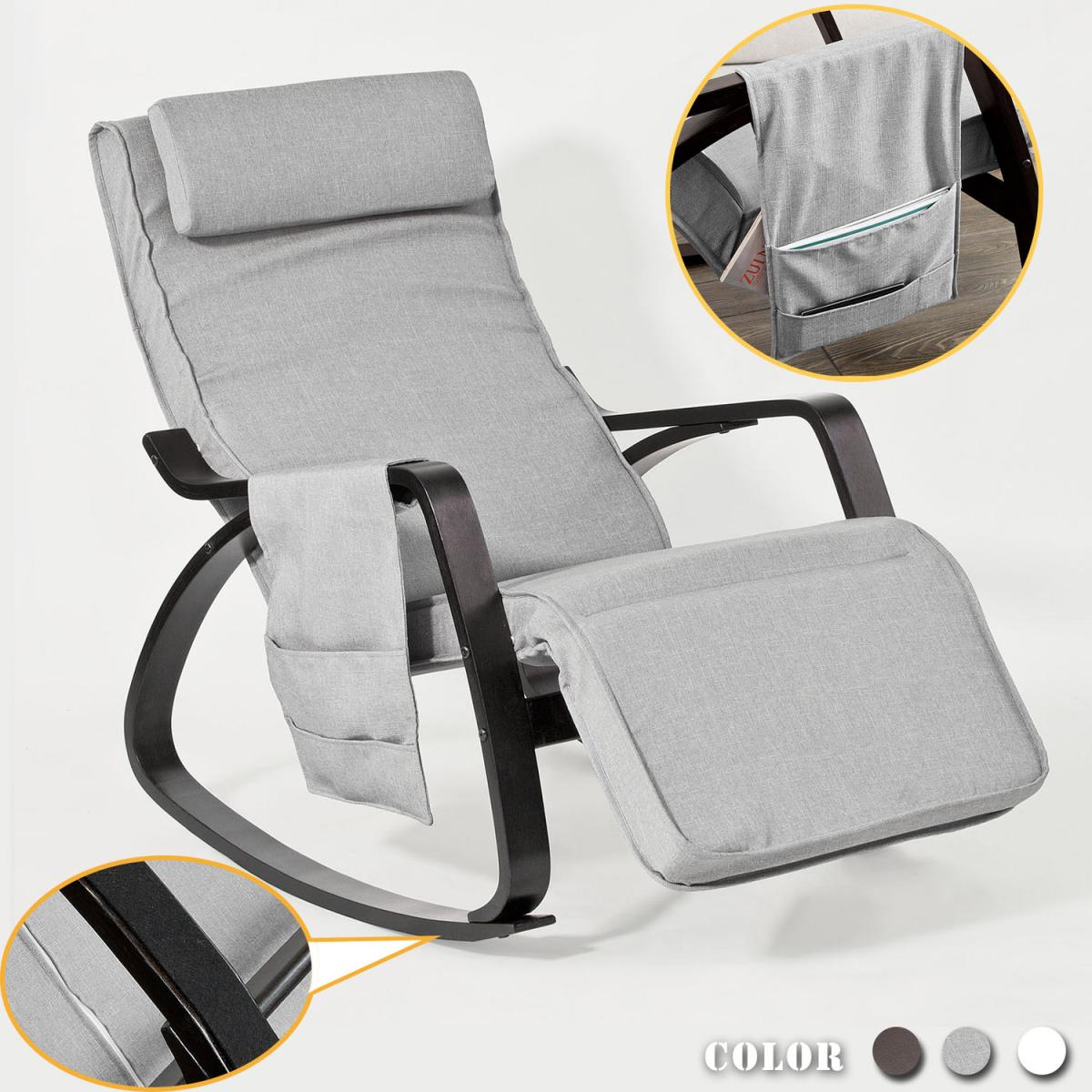 A combination of trendy design and high seating comfort makes this rocking chair for popular items. The fabric feels good on the skin and is removable and washable, also the foot is 5-way adjustable. The solid frame of laminated wood provides the necessary stability. A handy pocket is particularly suitable for small objects, like books, magazines, glasses, phones, etc. Through the beautiful appearance and the simple colour scheme, the rocking chair is ideally suited to modern furniture. You can relax with a book or during a movie night with this rocking chair.