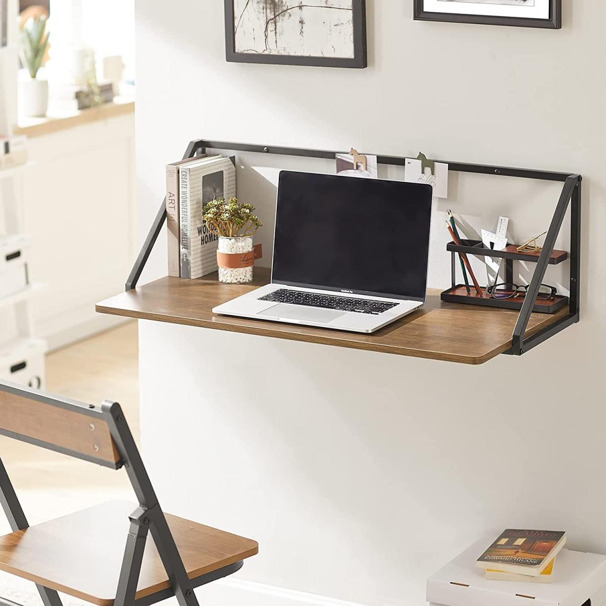 This Industrial Vintage Style Wall Table creates a distinctive and modern atmosphere for your home. It is ideal for the dining room, living room, bedroom, study room and office, etc. Large desk surface area so you have enough space for your computer, books and reading material. You can attach your to-do list or your favourite photos to the frame with magnets. It can be fixed to the wall by fasteners securely at the height you want. Fixings and instructions are included. Made of high-quality MDF with wooden effect and black powder coated steel frame. Stable and durable. Fashionable appearance, so it sure fit perfectly with any style of home decor.
