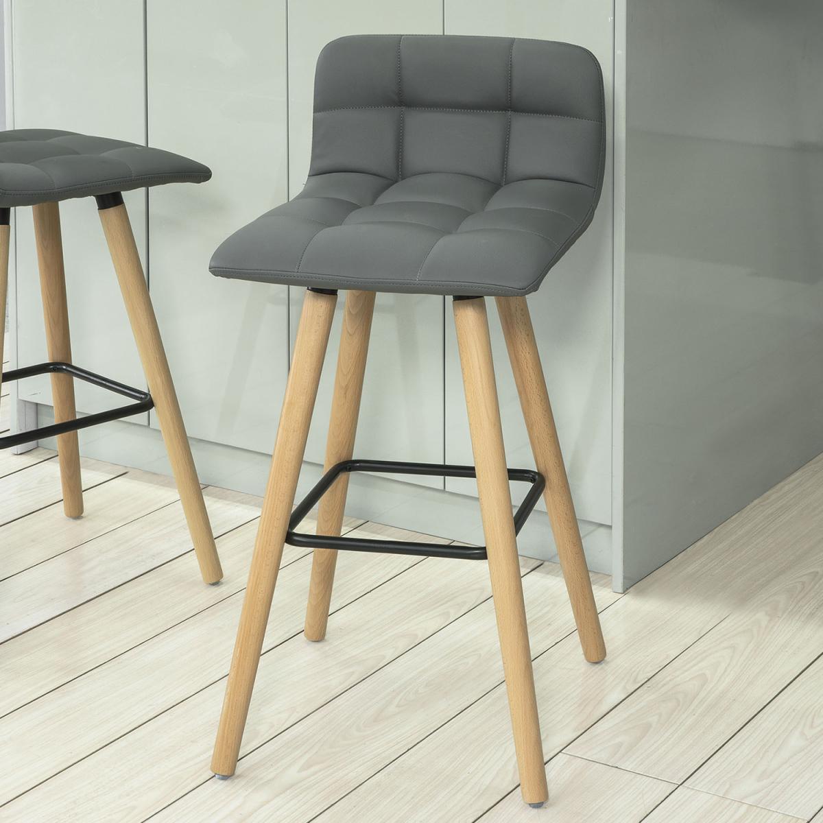 I really like this set of two grey barstools for their clean, modern look and versatile colour. They work particularly well in contemporary and Scandinavian interiors, where their sleek design complements minimalist schemes. The grey upholstery is practical, offering a neutral tone that hides light stains and blends seamlessly with various colour palettes. Styling tips include pairing them with a wooden or marble breakfast bar to emphasise the natural textures, or contrasting with colourful accessories for a playful splash of colour. Their slightly cushioned seats ensure comfort during casual meals or drinks, while the simple yet sturdy wooden legs add warmth to the overall aesthetic. Overall, these stools are a practical and stylish addition that can integrate effortlessly into both functional and relaxed dining environments.