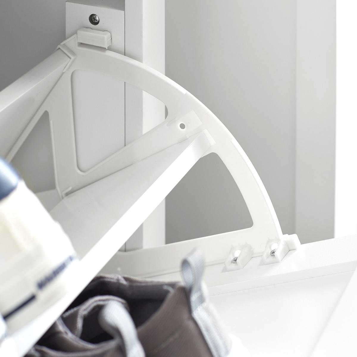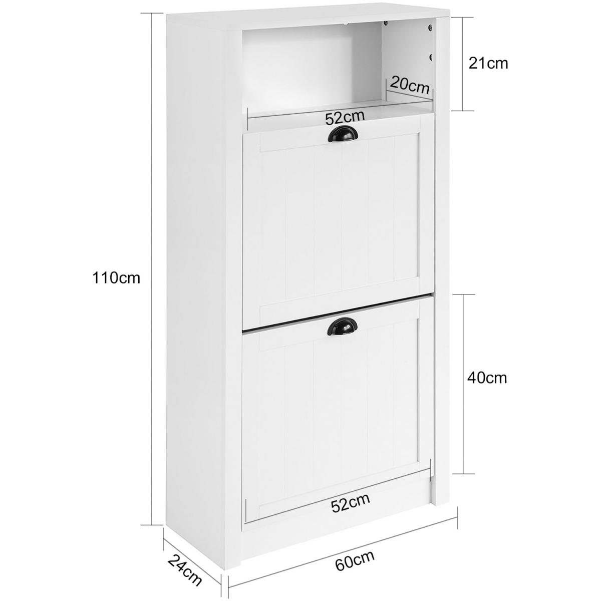 Modern design shoe cabinet will blend perfectly with your modern or traditional decor. Ideally located in hallway or porch, this unit comes with plenty of storage. It provides a shoe storage compartment of 2 flip-drawers. 2 rows of spaces for each drawer. The storage compartment on the top can be used for storing something like keys, wallet you might need in reach. The 24cm deep shoe cabinet is ideal for a narrow corridor. This shoe cabinet will keep your halls and entryway organized. Item comes in a flat pack and requires self-assembly. Detailed instructions supplied.