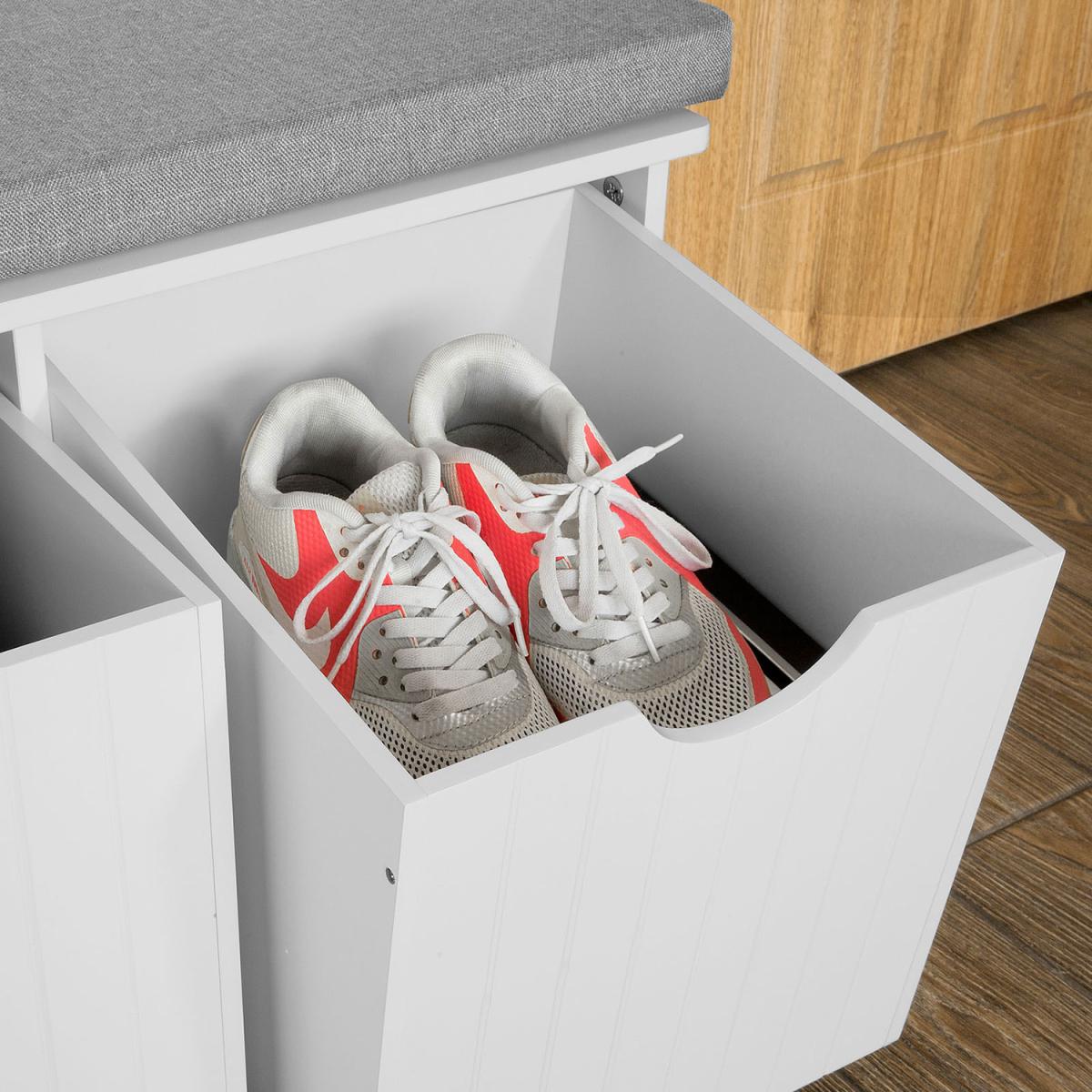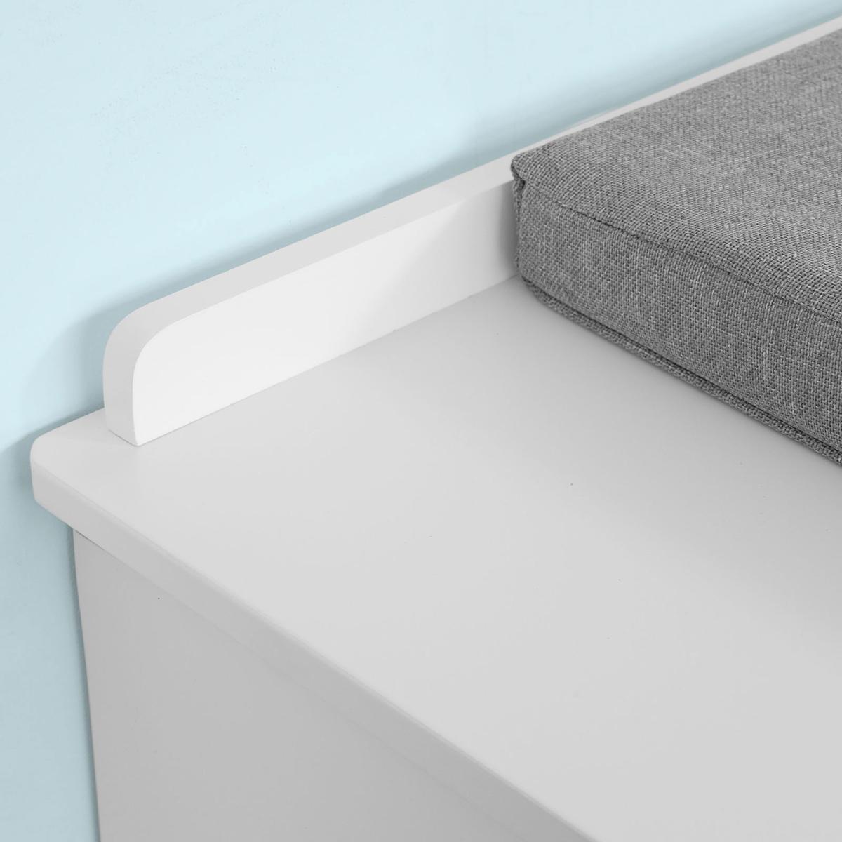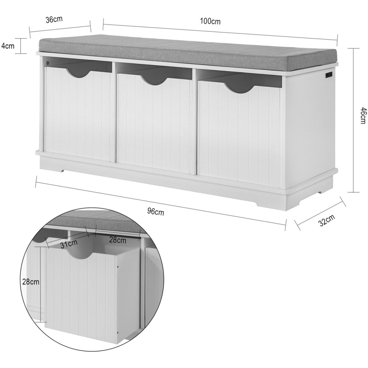 Modern design 3 drawers bench with soft seat cushion, good choice for hallway and living room. The padded seat which is removable is ideal for comfortable sitting while putting on and taking off shoes. 3 drawers provide ample storage space for shoes, boxes, books, magazines, etc. In addition, they can be pulled out completely as a great storage solution.