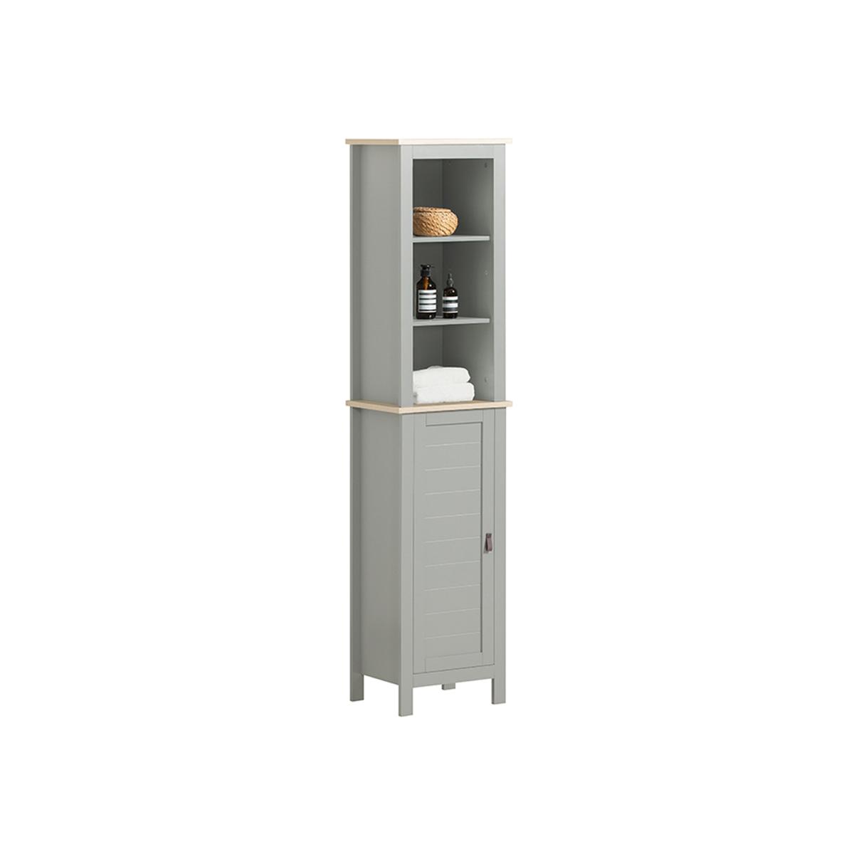 It has 3 storage compartments and 1 cupboard to ensure ample storage for all your bathroom essentials. There are 2 shelves in the cupboard. The upper shelf is adjustable in three heights. You can adjust the height to meet your needs or simply remove the shelf. Made of high quality MDF in grey lacquer. The top shelf and middle shelf are made of particle board with melamine veneer in wooden effect. Stable and durable. Coming with anti-tipping device, ensuring great stability and safety. Space saving storage solution that will help keep your bathroom tidy and organized. Fashionable appearance, so it sure fit perfectly with any style of decor.