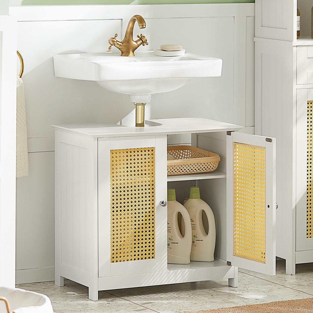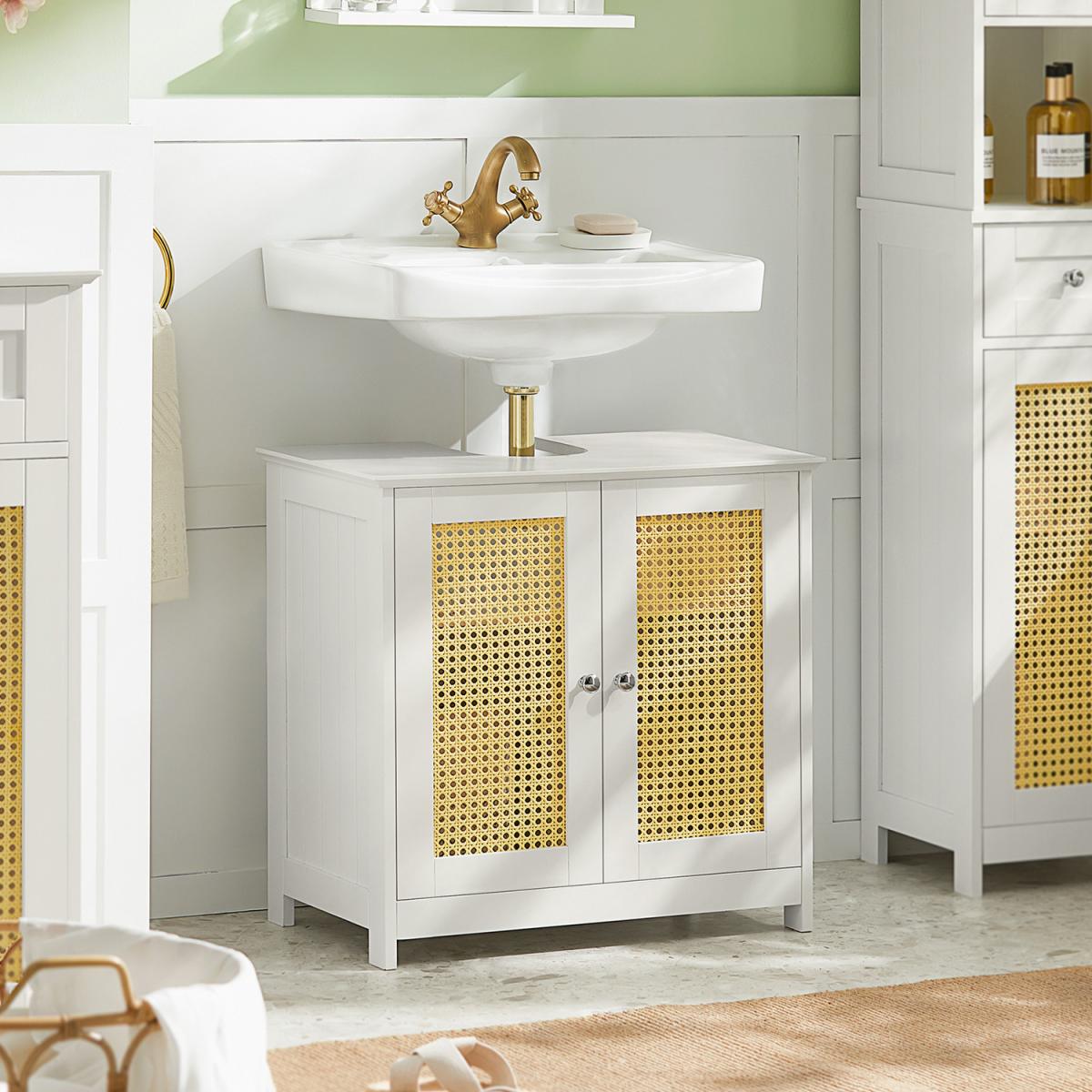 The under-sink cabinet is a superb choice for adding practical storage without compromising style. I love its clean white finish, which creates a fresh, airy feel-ideal for both modern and classic bathroom interiors. The rattan-style panels add a subtle texture that keeps the look from feeling too clinical, making it versatile enough to suit coastal, Scandi, or cottage-inspired spaces. For styling tips, consider pairing it with light wood accents and soft-toned accessories to enhance its natural, relaxed vibe. It’s perfect for evading clutter while maintaining a tidy, curated centrepiece for your bathroom.