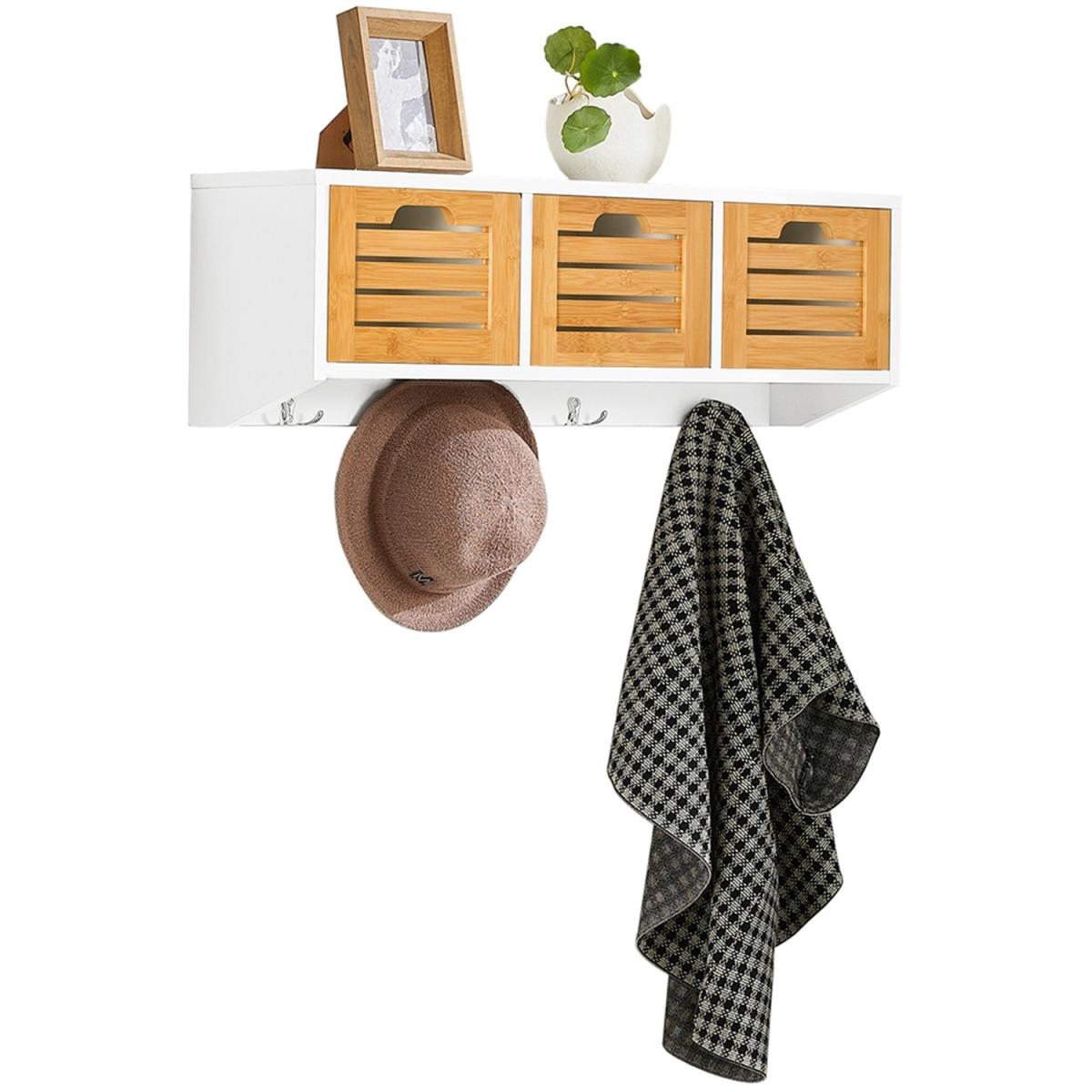 I really like how this wall-mounted rack combines warm bamboo fronts with a crisp white frame - it’s a fuss-free piece that fits effortlessly into Scandi-inspired, coastal or modern farmhouse hallways. The neutral tones keep things looking light, while the three hooks and cubby drawers give you just enough space for keys, hats and scarves without overwhelming a small entrance. For styling, top it with a slim vase of dried grasses or a small framed print to introduce subtle texture. Pop everyday gloves or dog-walking bits into lightweight baskets in the cubbies, and rotate seasonal scarves on the hooks so it always feels fresh. Because it’s wall-hung, you avoid floor clutter, making even the narrowest corridors feel more open.