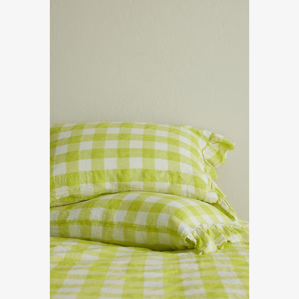 Hit snooze in this so-snug French flax linen bedding that just gets softer and softer over time (caution: may become harder to part with your bed in the morning). Featuring playful ruffles and a retro gingham print, add a splash of colour to your personal space. Linen Gingham Pillowcases, Set of 2 by Society of Wanderers in Green Size: S2 qn sham at Anthropologie