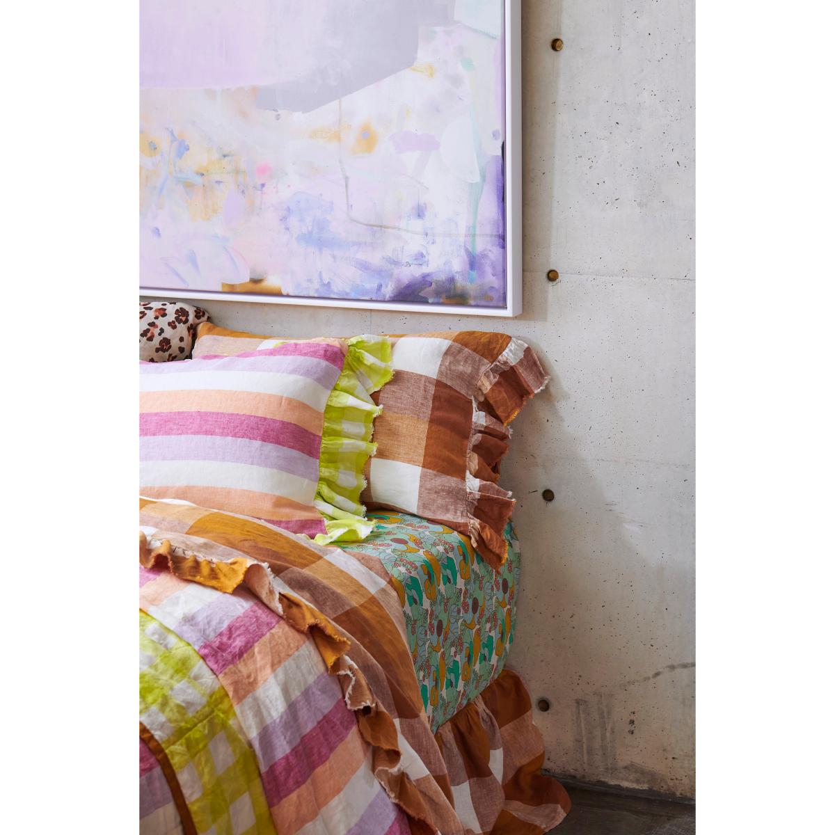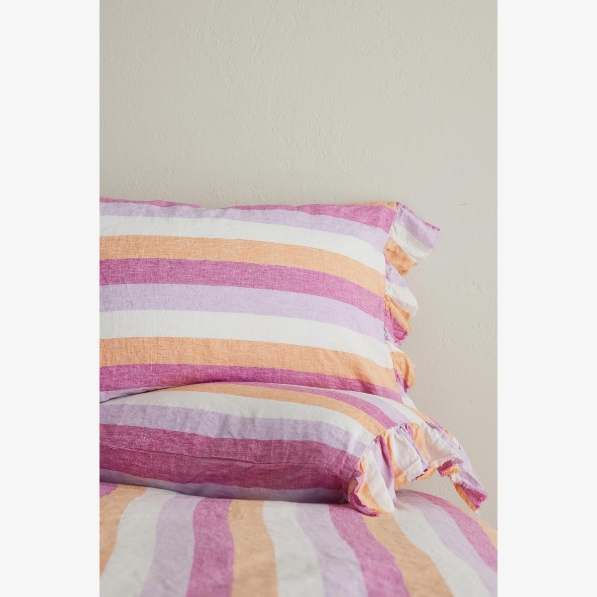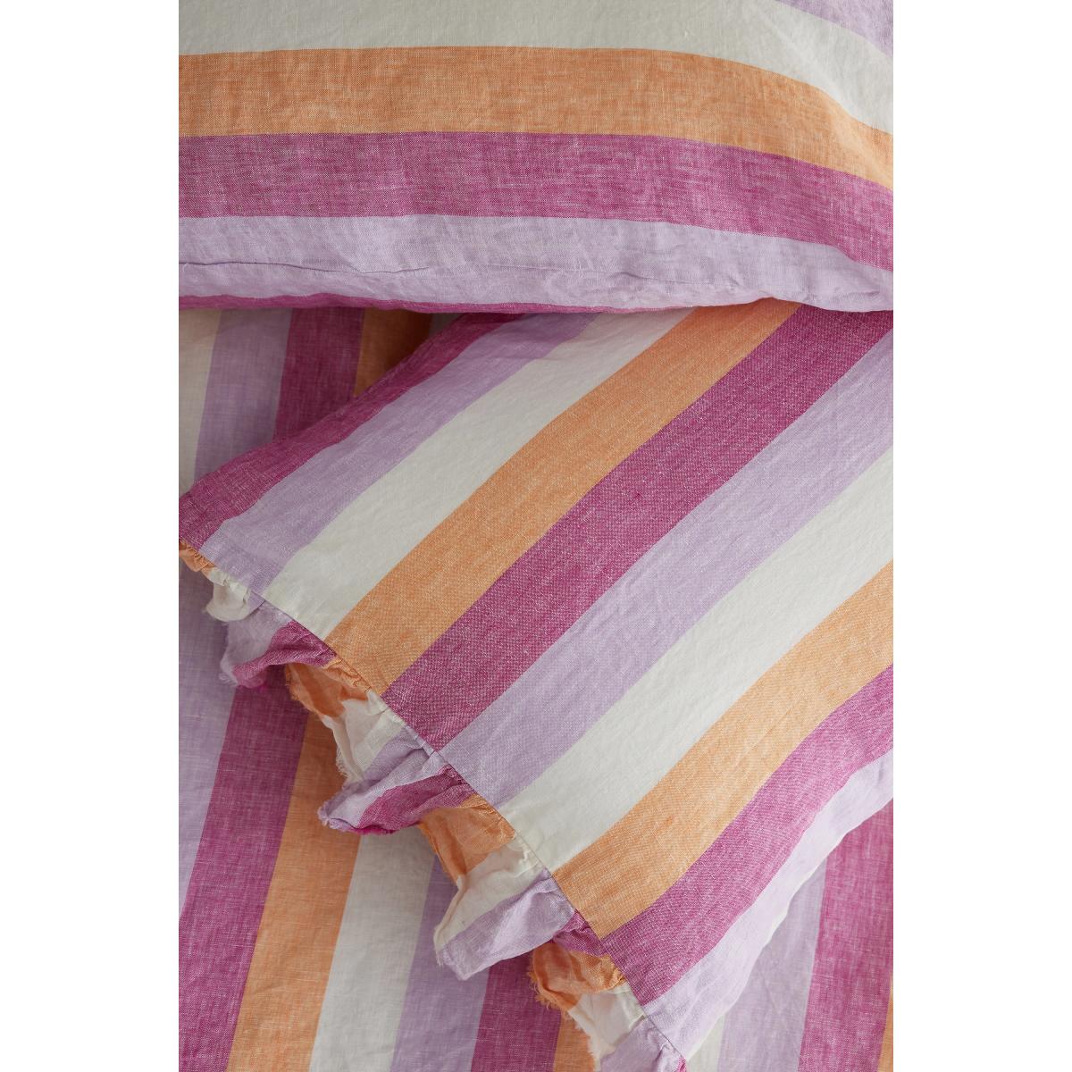 Hit snooze in this so-snug French flax linen bedding that just gets softer and softer over time (caution: may become harder to part with your bed in the morning). Featuring a playful contrast ruffle and a vibrant stripe print, add a splash of colour to your personal space. Linen Stripe Pillowcases, Set of 2 by Society of Wanderers in Pink Size: S2 qn sham at Anthropologie
