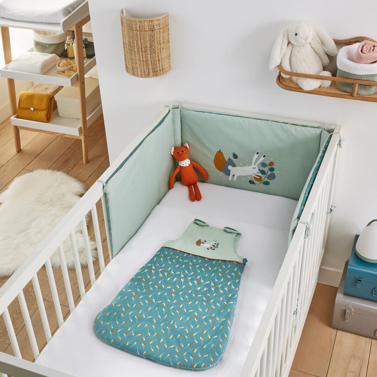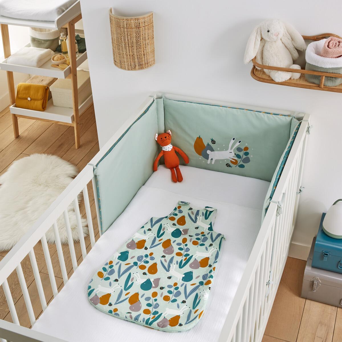 Socrato, the cheeky bunny is simply adorable!. Hidden in the garden, he wiggles his nose and springs onto this bed bumper in organic cotton percale.