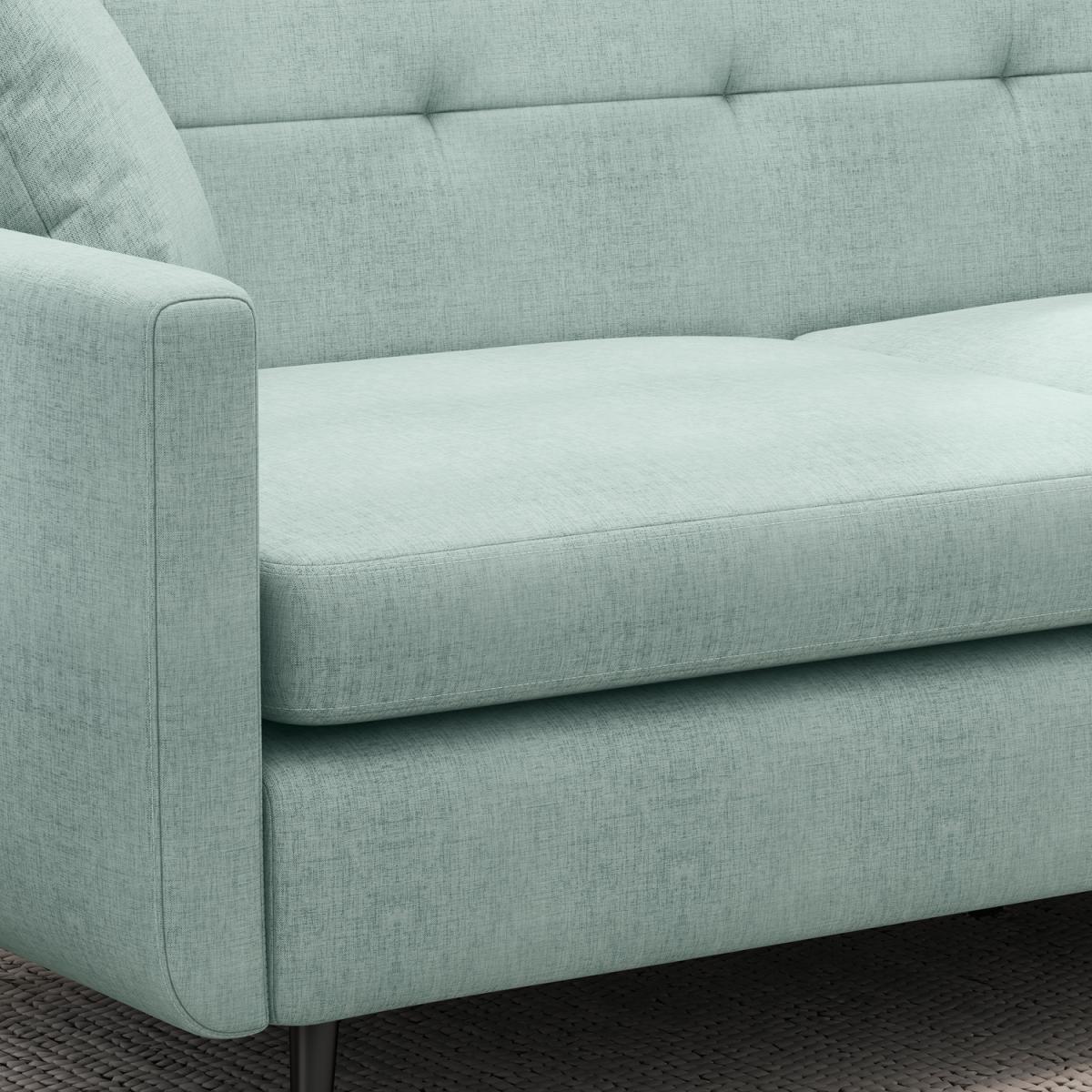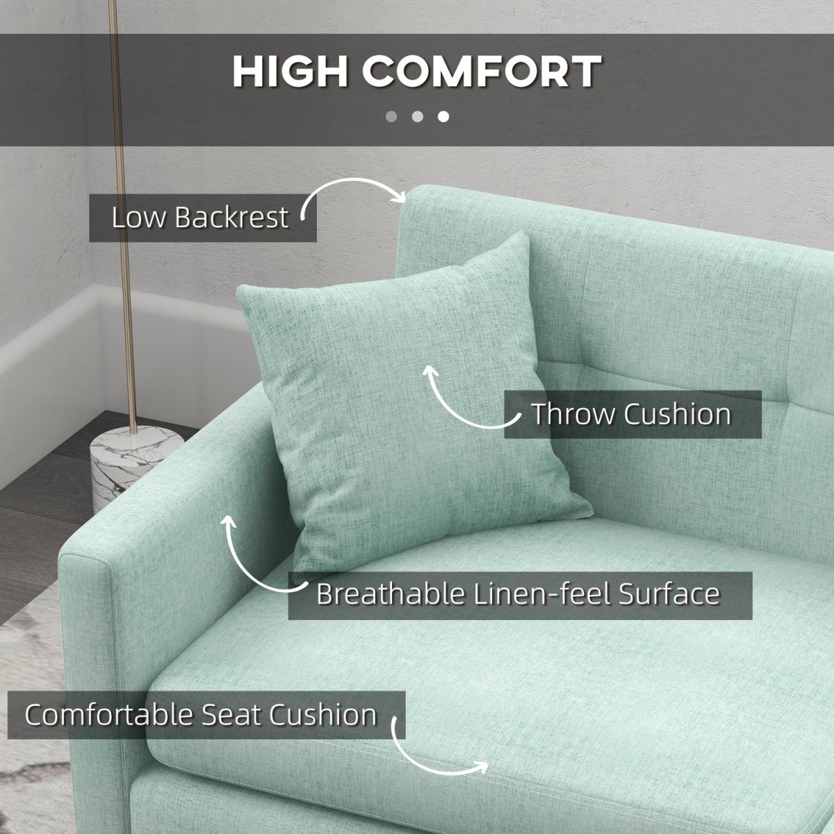 I love this blue loveseat for its versatile and fresh colour, which works particularly well in contemporary or coastal interiors. Its compact size makes it ideal for smaller living spaces or for creating cosy seating areas. The built-in storage pockets add a practical touch for keeping essentials handy, while the breathable linen-feel surface ensures comfort and durability. For styling, consider pairing it with neutral or muted tones to let the colour pop, or add some textured cushions and throws to enhance its cosy appeal. It’s a great choice for modern urban flats or relaxed family rooms where comfort and functionality are key.