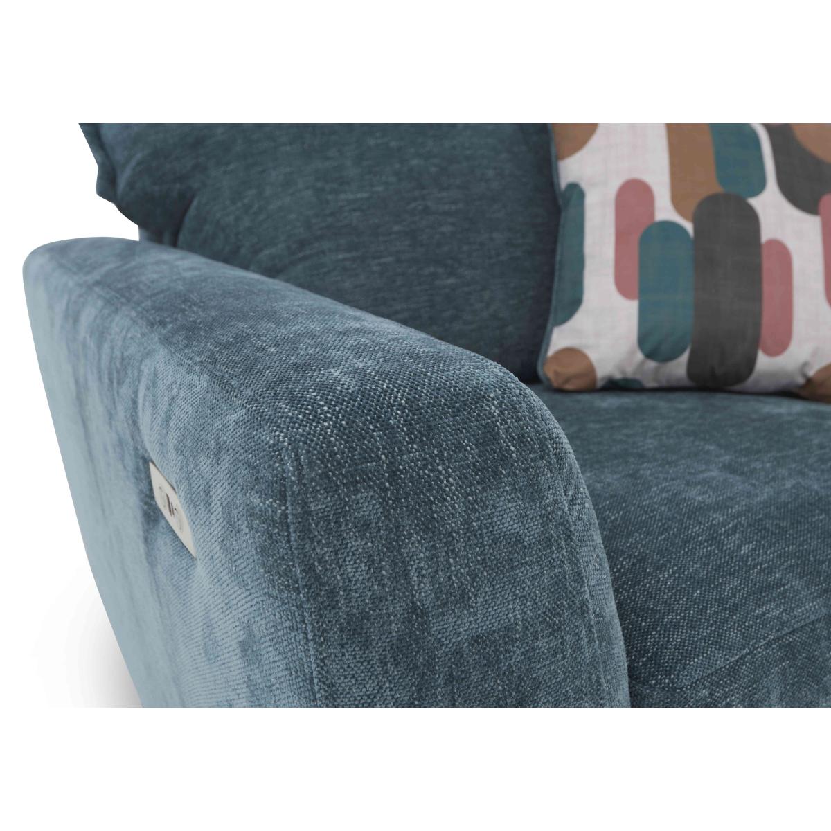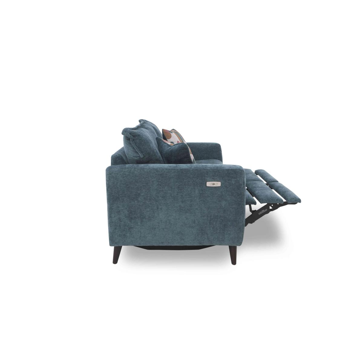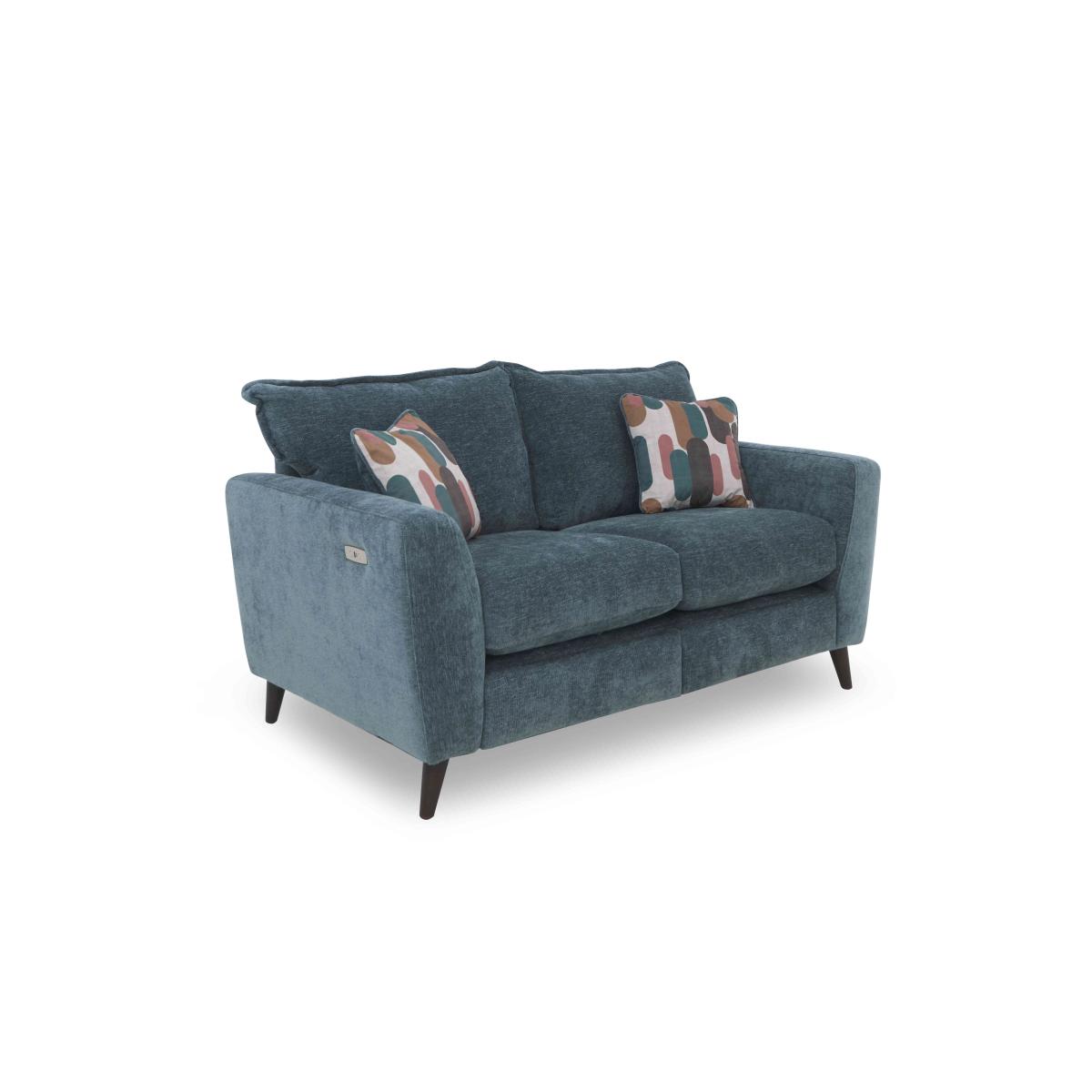 Lounging is easy with our Sofia range of power sofas and armchairs. Those elevating footrests invite you to take the weight off your feet and with plumpness-guaranteed seat cushioning, built-in USB and USB-C charging and feather-filled accent cushions, there’s no need to get up for a while. And, thanks to the range’s elegant tapered legs and squishy pillow-shaped back cushions with modern edge stitching, the lounging is rather stylish, too. Available in a choice of upholstery fabrics and leg finishes, it’s easy to tailor the Sofia range to your interior colour scheme. Complete the look with the range’s handy storage footstool. Made in the UK.It’s so easy to relax in fashionable style with this modern Sofia two-seater sofa. Offered in a choice of fabrics and leg finishes, it comes with two feather accent cushions and optional power footrest. Why you’ll love it Lounging is easy with this on-trend and elegant sofa. Super-comfortable with sprung seats and superb cushioning. Foam seat cushioning even comes with a 5-year plumpness guarantee. With optional power elevating footrests and USB and USB-C device charging. Squishy back cushions with edge stitching. In a choice of beautiful upholstery fabrics. Comes with 2 feather-filled accent cushions. Elegant tapered legs in a choice of finish. Built to last with an exceptionally sturdy frame. Made in the UK. This 2-seater fabric sofa is part of our Sofia range. What you need to know Medium comfort level. Seat suspension: spring. Seat cushioning: Duo Flex foam. Cushions are reversible. Back suspension: webbing. Back cushioning: fibre. Cushions are reversible. Footrest recliner mechanism requires a clearance of 3 cm and may not work successfully over very thick carpets and rugs. The non-power footrest version of this sofa does not have USB charging. Please allow time for new recliners to ease. Minor gaps are necessary to ensure ease of recliner motion and may be exaggerated depending on floor type. Clean regularly using a soft brush or vacuum with the curtain attachment. Deal with any spills promptly. Professional cleaning advised for oil- and grease-based stains. Please read our upholstery care guide for more advice.