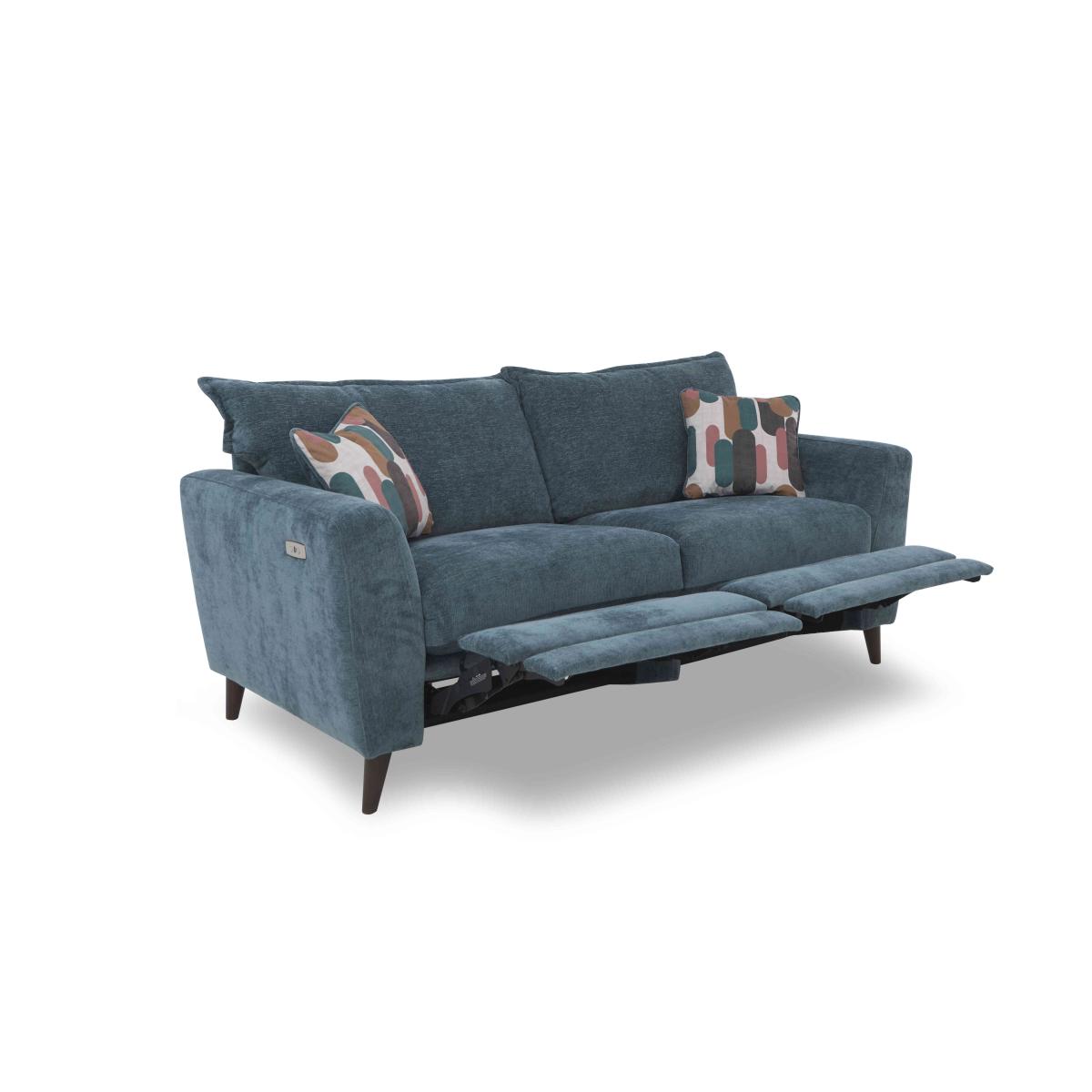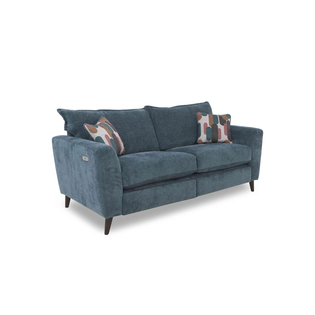 Lounging is easy with our Sofia range of power sofas and armchairs. Those elevating footrests invite you to take the weight off your feet and with plumpness-guaranteed seat cushioning, built-in USB and USB-C charging and feather-filled accent cushions, there’s no need to get up for a while. And, thanks to the range’s elegant tapered legs and squishy pillow-shaped back cushions with modern edge stitching, the lounging is rather stylish, too. Available in a choice of upholstery fabrics and leg finishes, it’s easy to tailor the Sofia range to your interior colour scheme. Complete the look with the range’s handy storage footstool. Made in the UK.Lounge in style with this elegant and modern three-seater sofa, upholstered in a choice of fabrics and with two different leg finishes. Want more? Opt for the power recline model. Why you’ll love it Lounging is easy with this on-trend and elegant sofa. Super-comfortable with sprung seats and superb cushioning. Foam seat cushioning even comes with a 5-year plumpness guarantee. With optional power elevating footrests and USB and USB-C device charging. Squishy back cushions with edge stitching. In a choice of beautiful upholstery fabrics. Comes with 2 feather-filled accent cushions. Elegant tapered legs in a choice of finish. Built to last with an exceptionally sturdy frame. Made in the UK. This 3-seater sofa is part of our Sofia range. What you need to know Medium comfort level. Seat suspension: spring. Seat cushioning: Duo Flex foam. Cushions are reversible. Back suspension: webbing. Back cushioning: fibre. Cushions are reversible. Footrest recliner mechanism requires a clearance of 3 cm and may not work successfully over very thick carpets and rugs. The non-power footrest version of this sofa does not have USB or USB-C charging. Please allow time for new recliners to ease. Minor gaps are necessary to ensure ease of recliner motion and may be exaggerated depending on floor type. Clean regularly using a soft brush or vacuum with the curtain attachment. Deal with any spills promptly. Professional cleaning advised for oil- and grease-based stains. Please read our upholstery care guide for more advice.