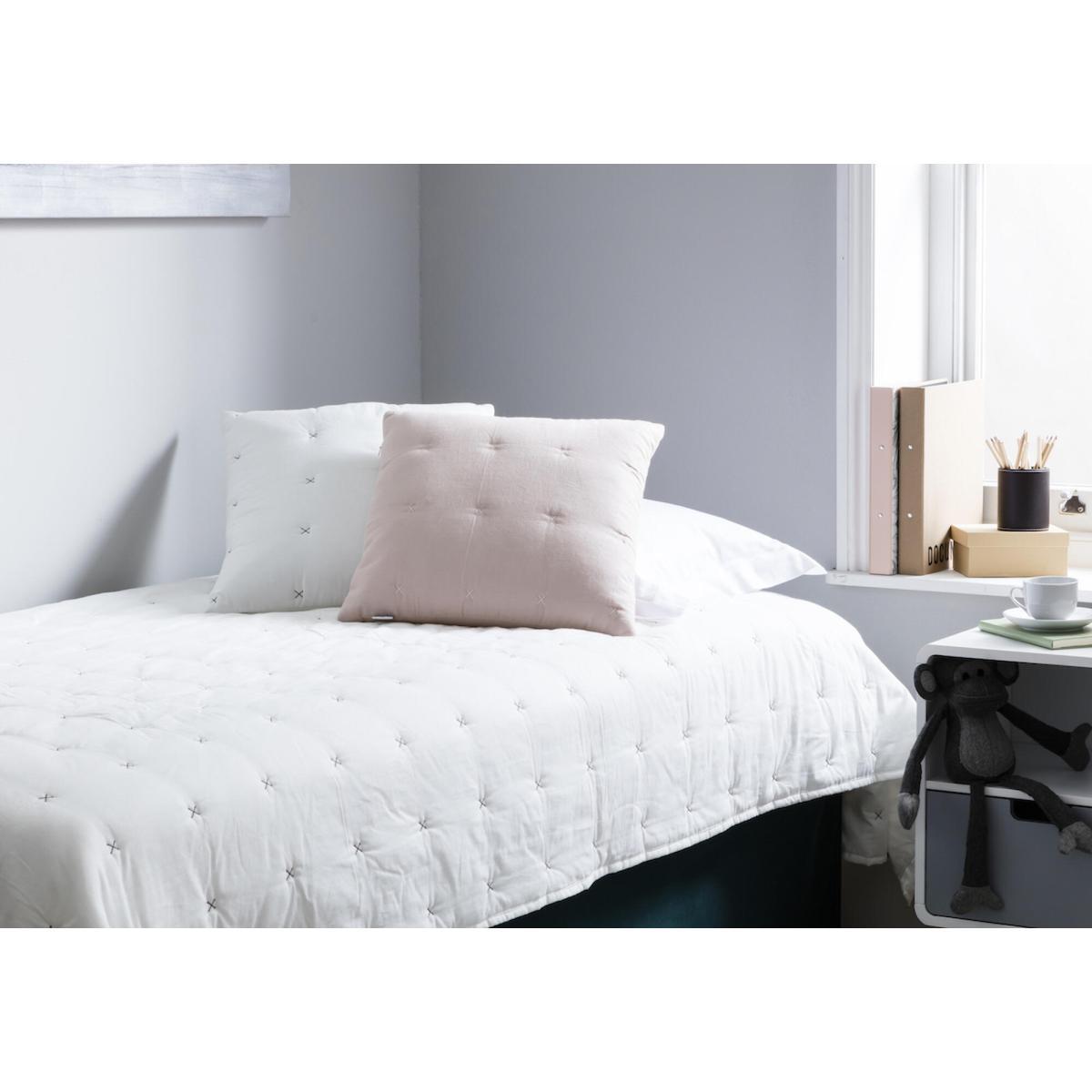 Give your bedroom a super simple yet instant upgrade. Paired with its matching bedspread, the Sofia Cushion will take your bedroom to the next level, giving you the luxurious hotel feeling in your own home. Both beautiful and useful during those winter nights, this cushion will enfuse the room with a soft burst of colour. Also available in an elegant white with silver stitching, the Sofia will work well with whatever your colour scheme may be.