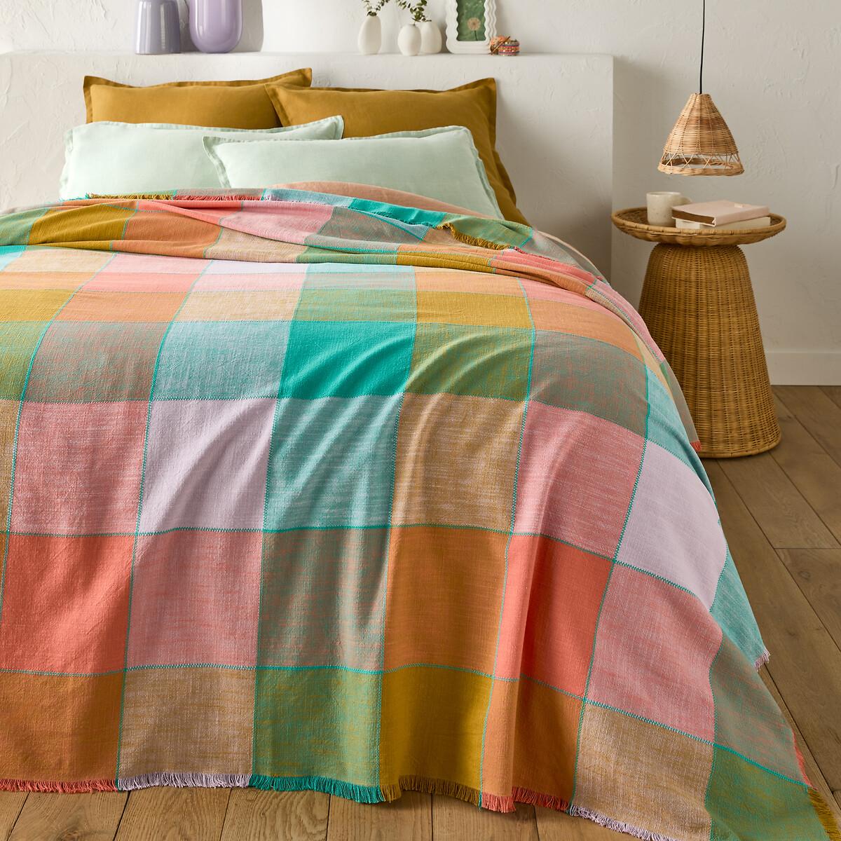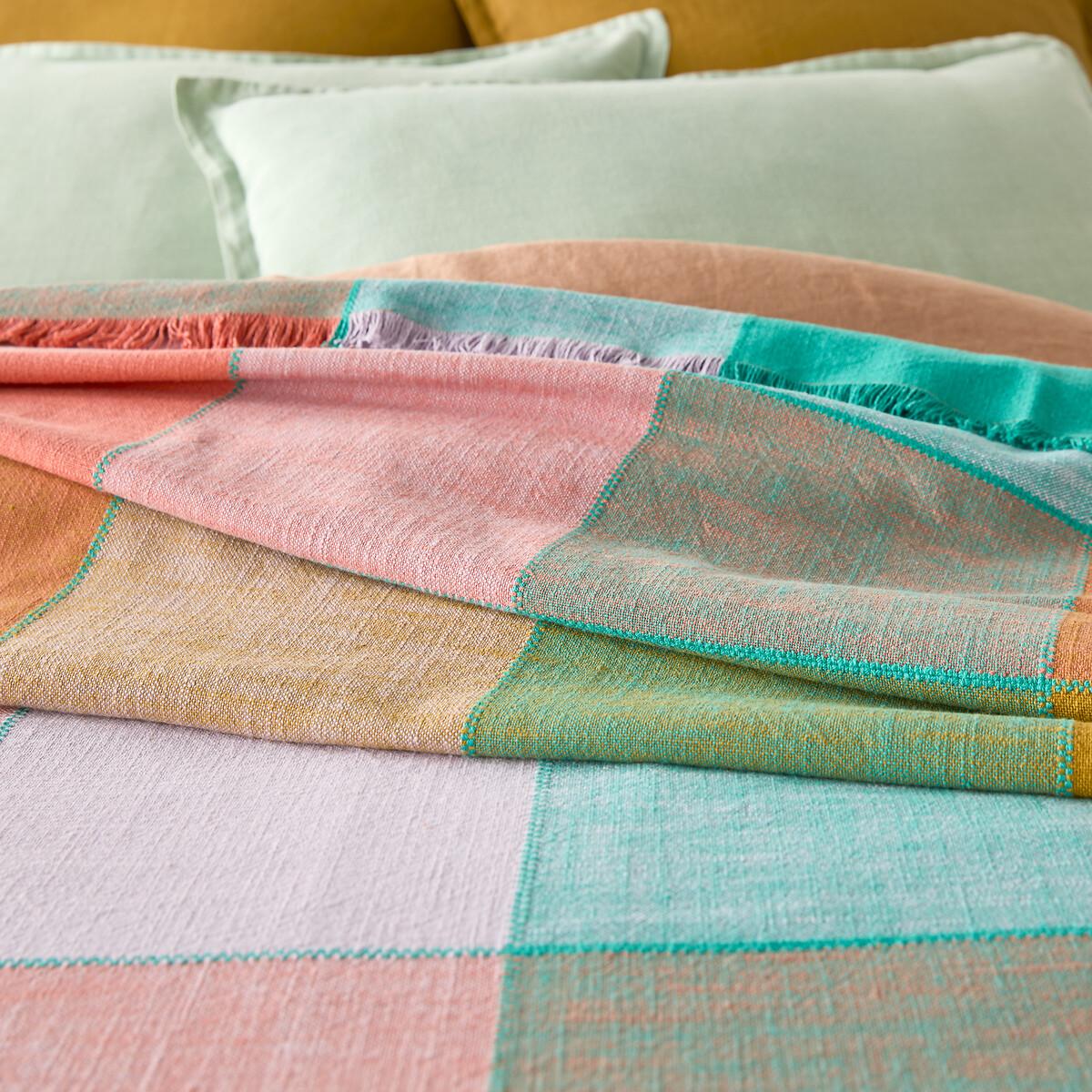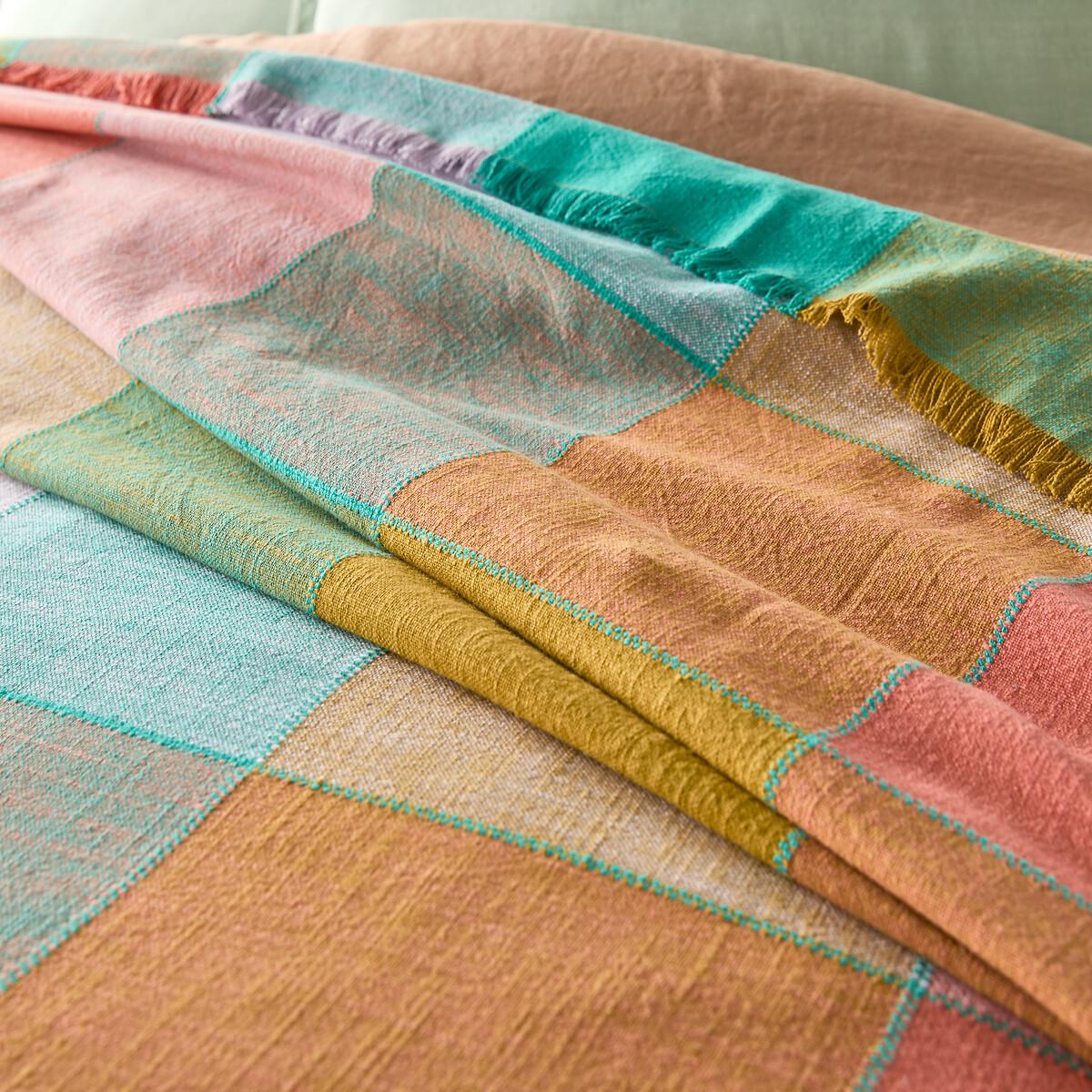 The pastel softness of the Sofia bedspread invites a coordinated look to your interior decor. Multicoloured madras-type tiles are enhanced by fringes on the outline. Cotton is part of our daily lives. We love it for its suppleness and softness. Easy Care, it is ideal for the beds of young and old alike!Product Details • 100% cotton • Fringed edging. • Topstitching at tile junctions. Care Advice • Washable at 40°CSizes • 180 x 230cm • 230 x 250cm