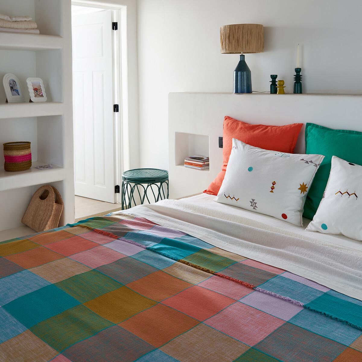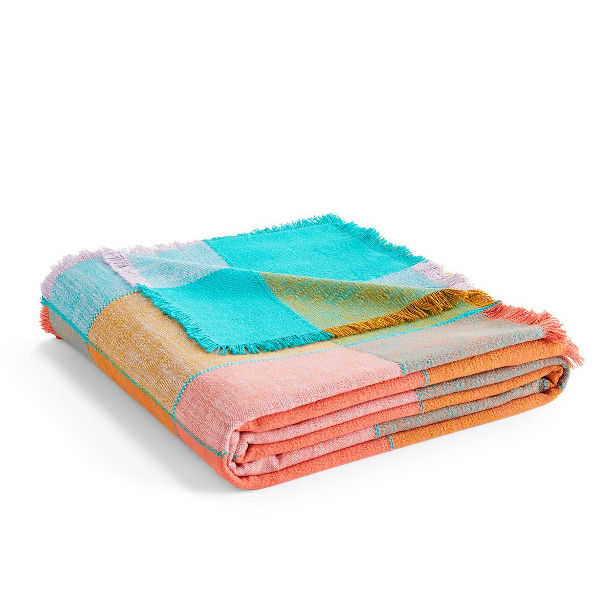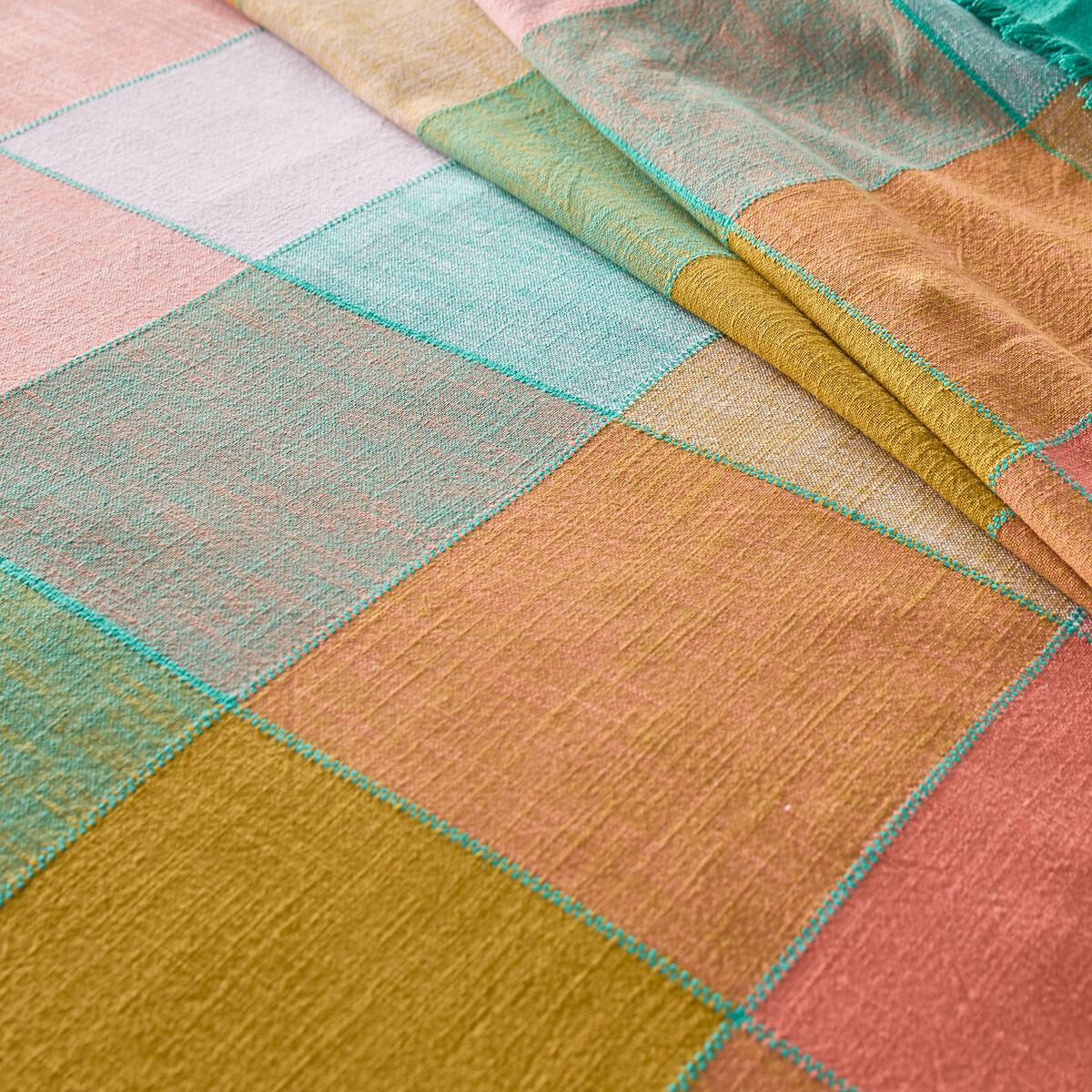 The pastel softness of the Sofia bedspread invites a coordinated look to your interior decor. Multicoloured madras-type tiles are enhanced by fringes on the outline. Cotton is part of our daily lives. We love it for its suppleness and softness. Easy Care, it is ideal for the beds of young and old alike!Product Details • 100% cotton • Fringed edging. • Topstitching at tile junctions. Care Advice • Washable at 40°CSizes • 180 x 230cm • 230 x 250cm