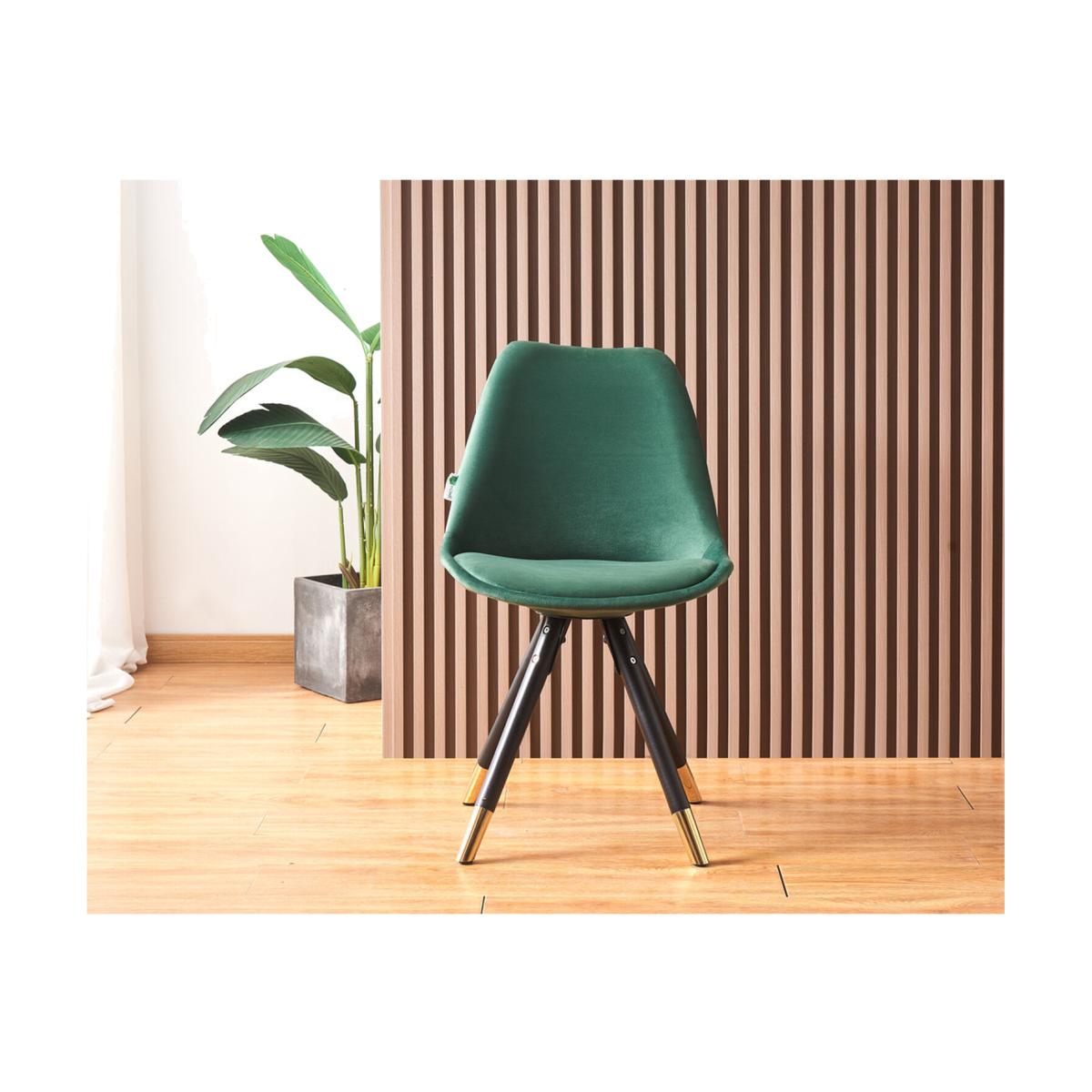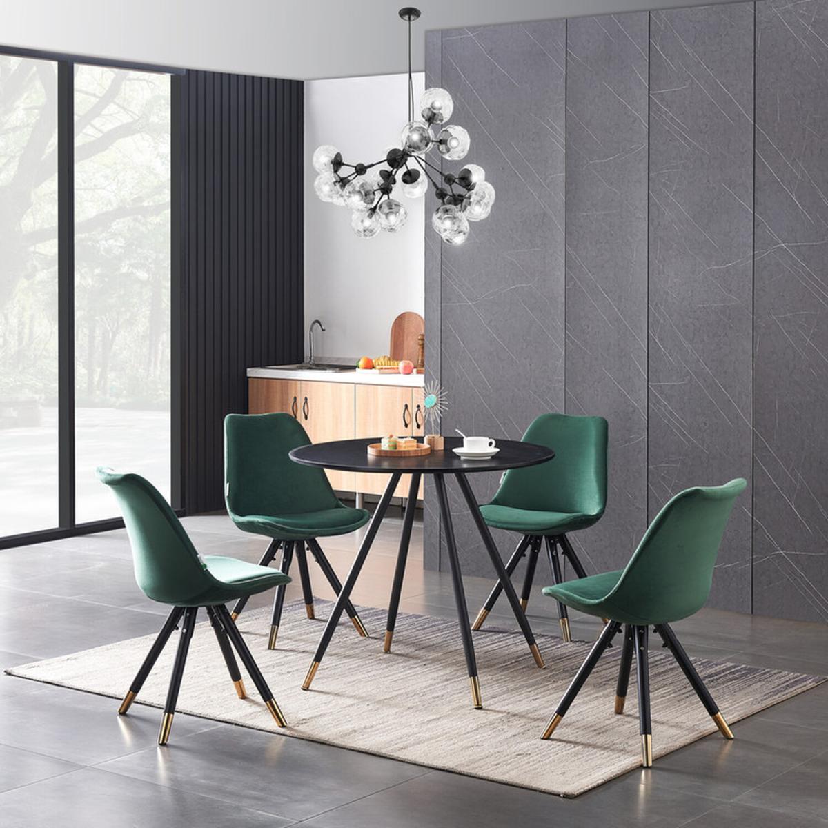 Bring a flexible gaze to your eye-catching kitchen with this space-saving Sofia Dorchester Versatile LUX Dining Set. The set comes with a Dorchester Lux Dining Table featuring a premium quality tabletop that has been crafted from MDF and 3D paper. A table is supported by exquisite black powder-coated metal legs with gold-tipped feet for that added oomph. The table legs are non-slip, anti-rust, waterproof, and stable accompanied by non-slip foot pads protecting your floor and carpet. Also, the Retro chairs feature a curved back and velvet padded seat, supported by four metal legs that provide enduring strength and sturdiness. Moreover, the legs also have gold round adjustable feet that improve their stability and add great value to your interior. Our ergonomic chair offers an exceptionally comfortable sitting experience. Since the dining chair cushion is soft and stylish, the curved back is the definition of elegance, providing your low back or spine with enough support for a long-term relaxation. Perfect for the office, dining room, living room, kitchen, hotel, caf, or restaurant.