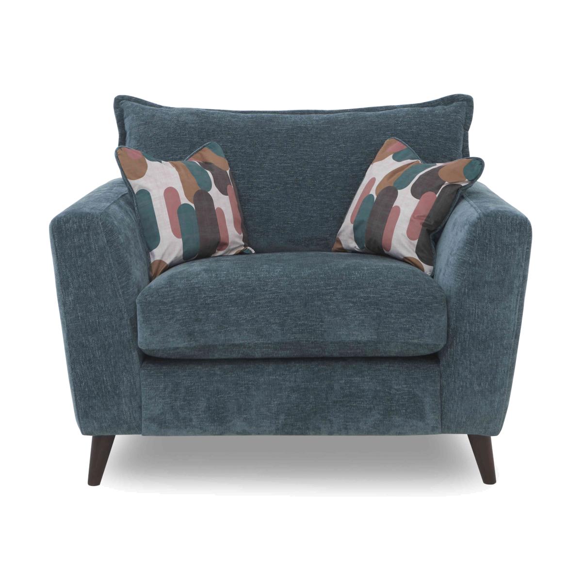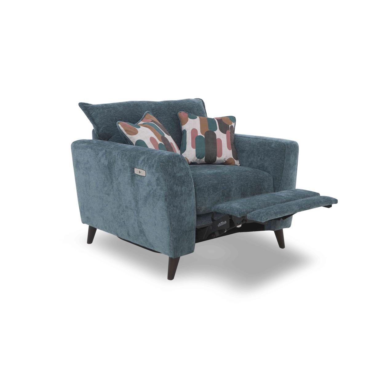 Lounging is easy with our Sofia range of power sofas and armchairs. Those elevating footrests invite you to take the weight off your feet and with plumpness-guaranteed seat cushioning, built-in USB and USB-C charging and feather-filled accent cushions, there’s no need to get up for a while. And, thanks to the range’s elegant tapered legs and squishy pillow-shaped back cushions with modern edge stitching, the lounging is rather stylish, too. Available in a choice of upholstery fabrics and leg finishes, it’s easy to tailor the Sofia range to your interior colour scheme. Complete the look with the range’s handy storage footstool. Made in the UK.Snuggle up in style on the sprung seat of the Sofia snuggler chair. Upgrade your comfort with the power recline version and put your feet up with ease thanks to the elevating footrest. Why you’ll love it Lounging is easy with this on-trend and elegant snuggler chair. Super-comfortable with sprung seat and superb cushioning. Foam seat cushioning even comes with a 5-year plumpness guarantee. With optional power elevating footrest and USB and USB-C device charging. Squishy back cushion with edge stitching. In a choice of beautiful upholstery fabrics. Comes with a feather-filled accent cushion. Elegant tapered legs in a choice of finish. Built to last with an exceptionally sturdy frame. Made in the UK. This fabric snuggler chair is part of our Sofia range. What you need to know Medium comfort level. Seat suspension: spring. Seat cushioning: Duo Flex foam. Cushion is reversible. Back suspension: webbing. Back cushioning: fibre. Cushion is reversible. The non-power footrest version of this snuggler chair does not have USB or USB-C charging. Footrest recliner mechanism requires a clearance of 3 cm and may not work successfully over very thick carpets and rugs. Please allow time for new recliners to ease. Minor gaps are necessary to ensure ease of recliner motion and may be exaggerated depending on floor type. Clean regularly using a soft brush or vacuum with the curtain attachment. Deal with any spills promptly. Professional cleaning advised for oil- and grease-based stains. Please read our upholstery care guide for more advice.