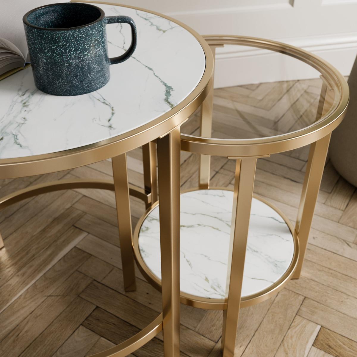 Sofia Faux Marble Top Nest of Tables, Gold