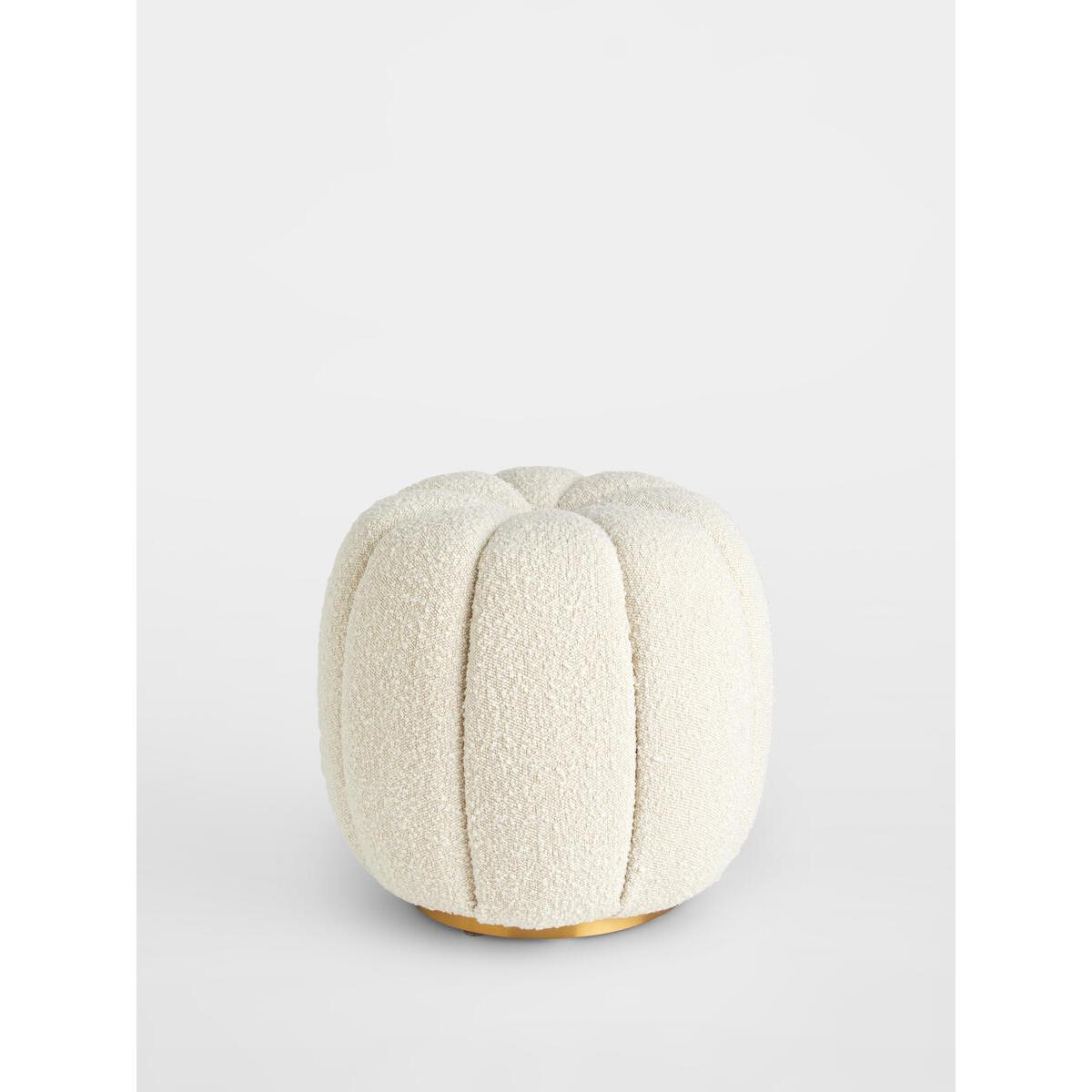 Inspired by the footstools found in club spaces and bedrooms at. Soho House Barcelona and Kettner's in Soho, our compact Sofiafootstool is crafted from a textured bouclé fabric - use it as analternative seating spot for unexpected guests. Round 'pumpkin' footstool. Bouclé fabric. Inspired by footstools in Soho House Barcelona and Kettner's. Soho.