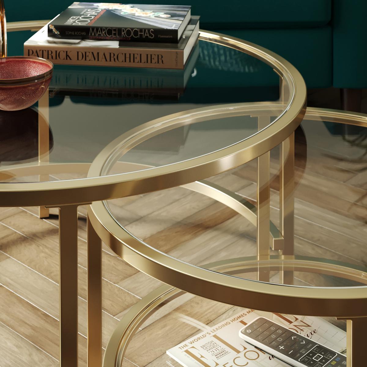 I love the Sofia glass coffee nest because its sleek gold finish adds a touch of luxury without overpowering the space. It works beautifully in contemporary and glam interiors, especially when paired with bold colours or metallic accents. The nesting design not only maximises surface area for styling but also offers versatile use-perfect for casual hosting or everyday practicality. For styling tips, try layering with neutral-toned accessories, such as textured books, vases or candles to create an inviting yet sophisticated vignette. It’s also a great choice for smaller rooms, allowing you to tuck the smaller table away when extra space is needed.