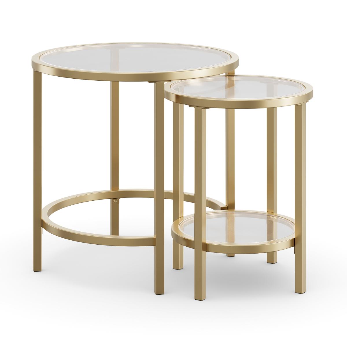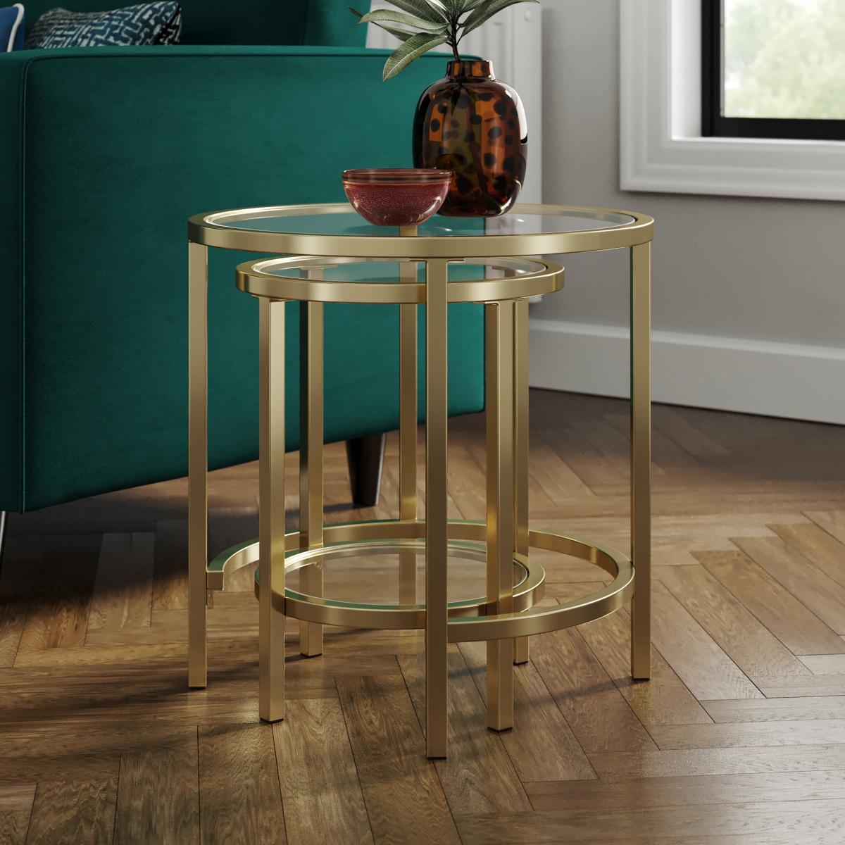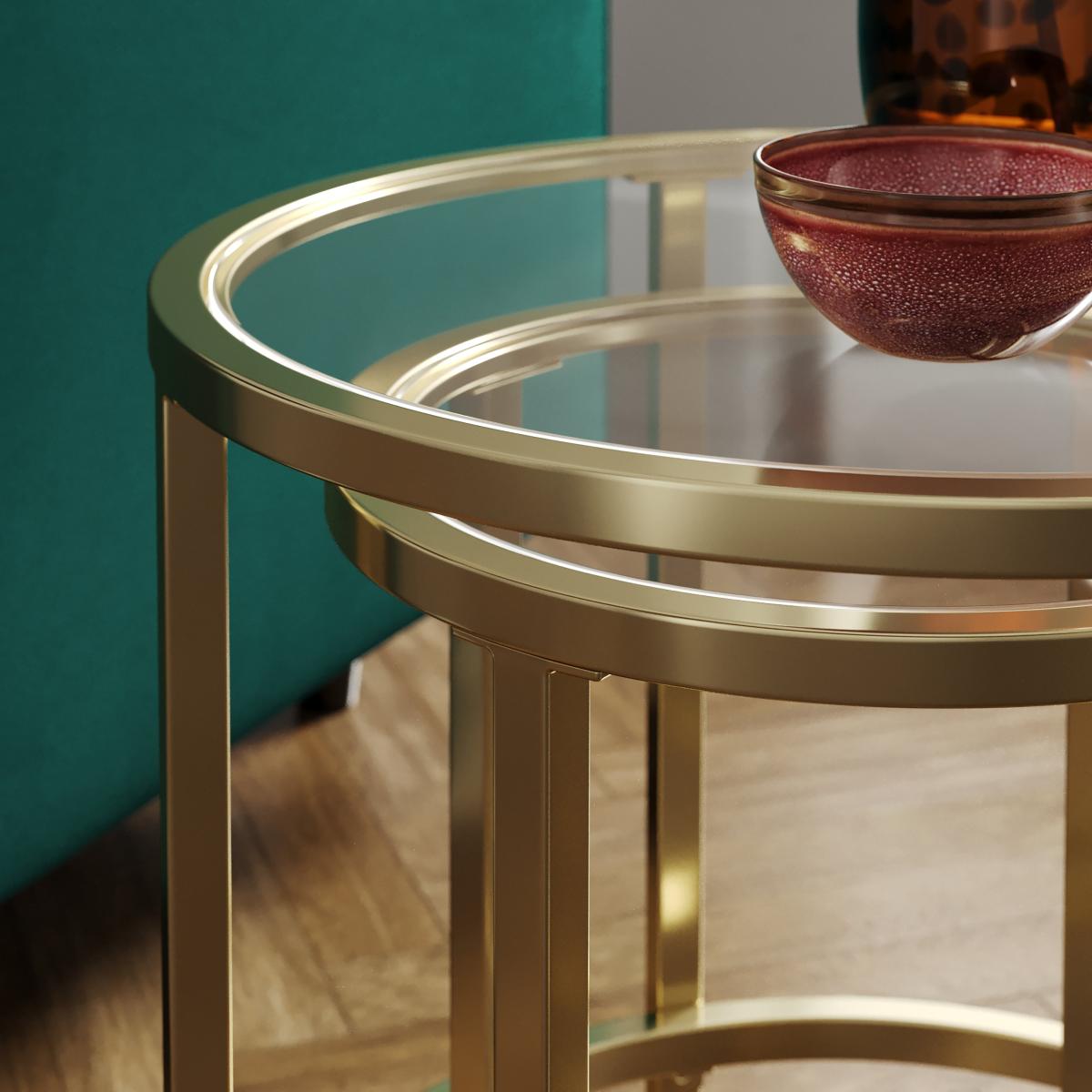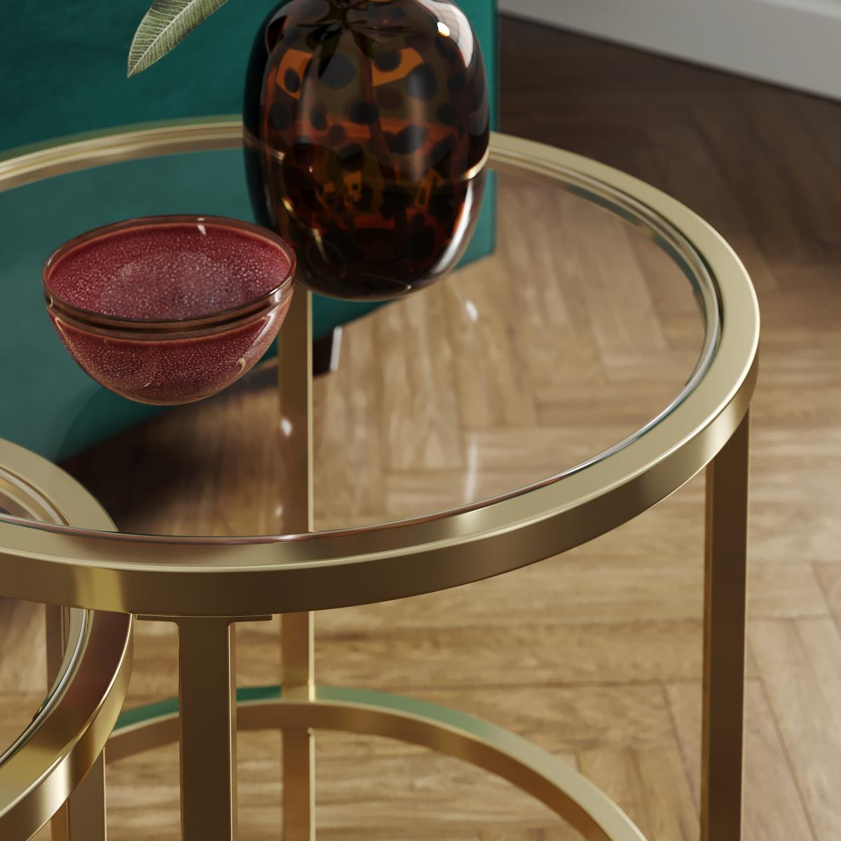 I love this set of small tables for their sleek, contemporary feel and versatility. The gold finish makes them a great statement piece that can elevate both modern and traditional interiors. They work particularly well in living rooms or bedrooms where space is at a premium, offering a handy surface for lamps, drinks, or decorative accessories without cluttering the room. For styling tips, try pairing them with bold ceramics or textured textiles to add interest, or use them as a plant stand to introduce greenery and natural texture. Their nesting capability also makes them practical for layering up for larger gatherings or simply saving space when they’re not in use.