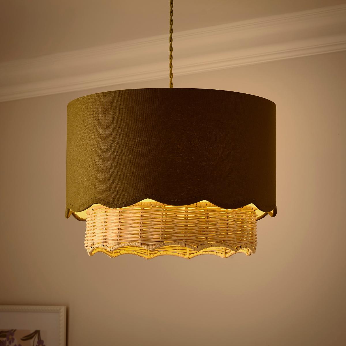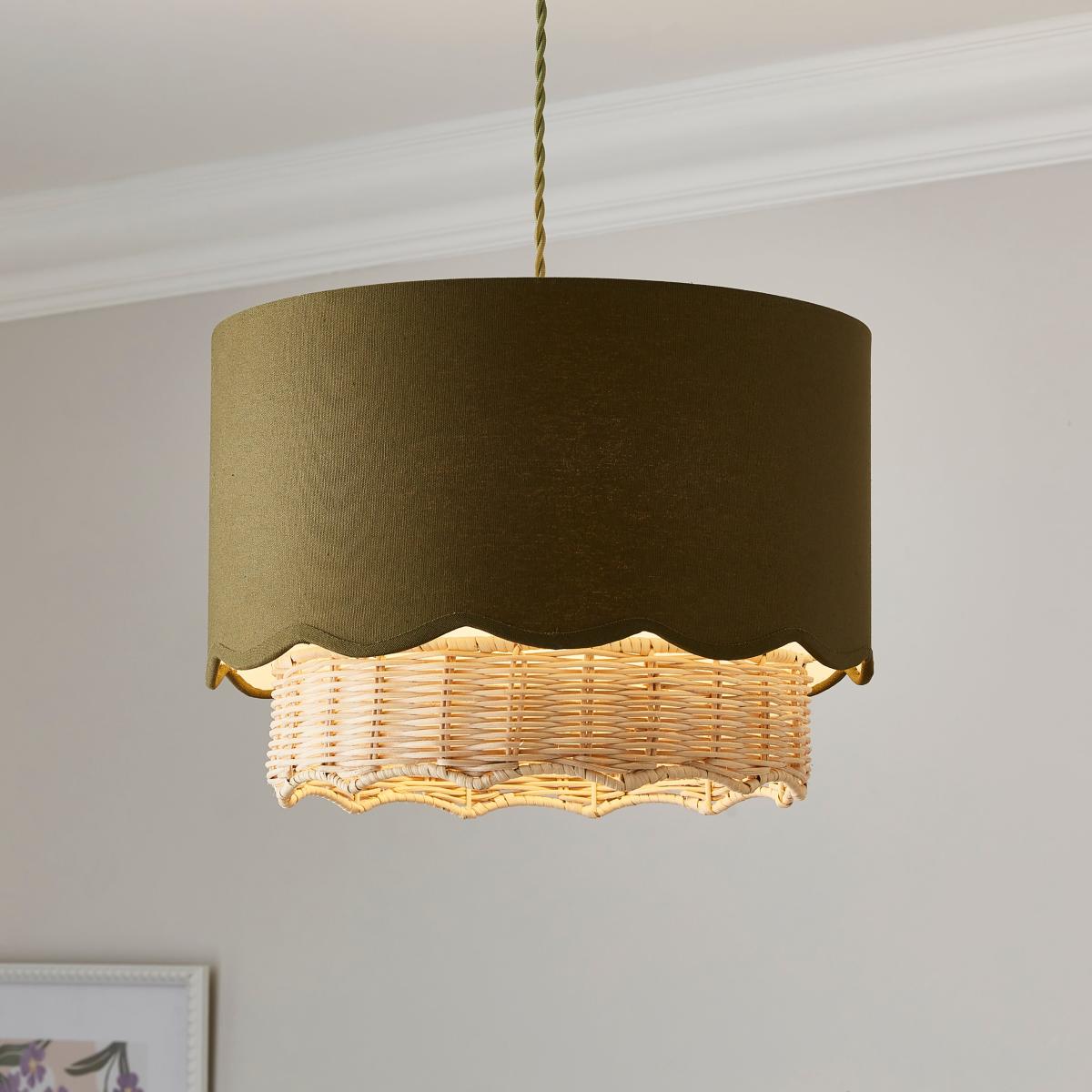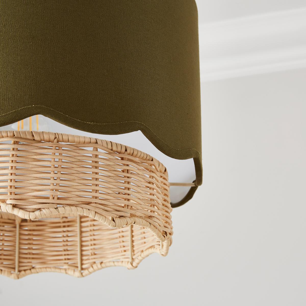 Sofia Round Rattan Scalloped Lamp Shade Olive