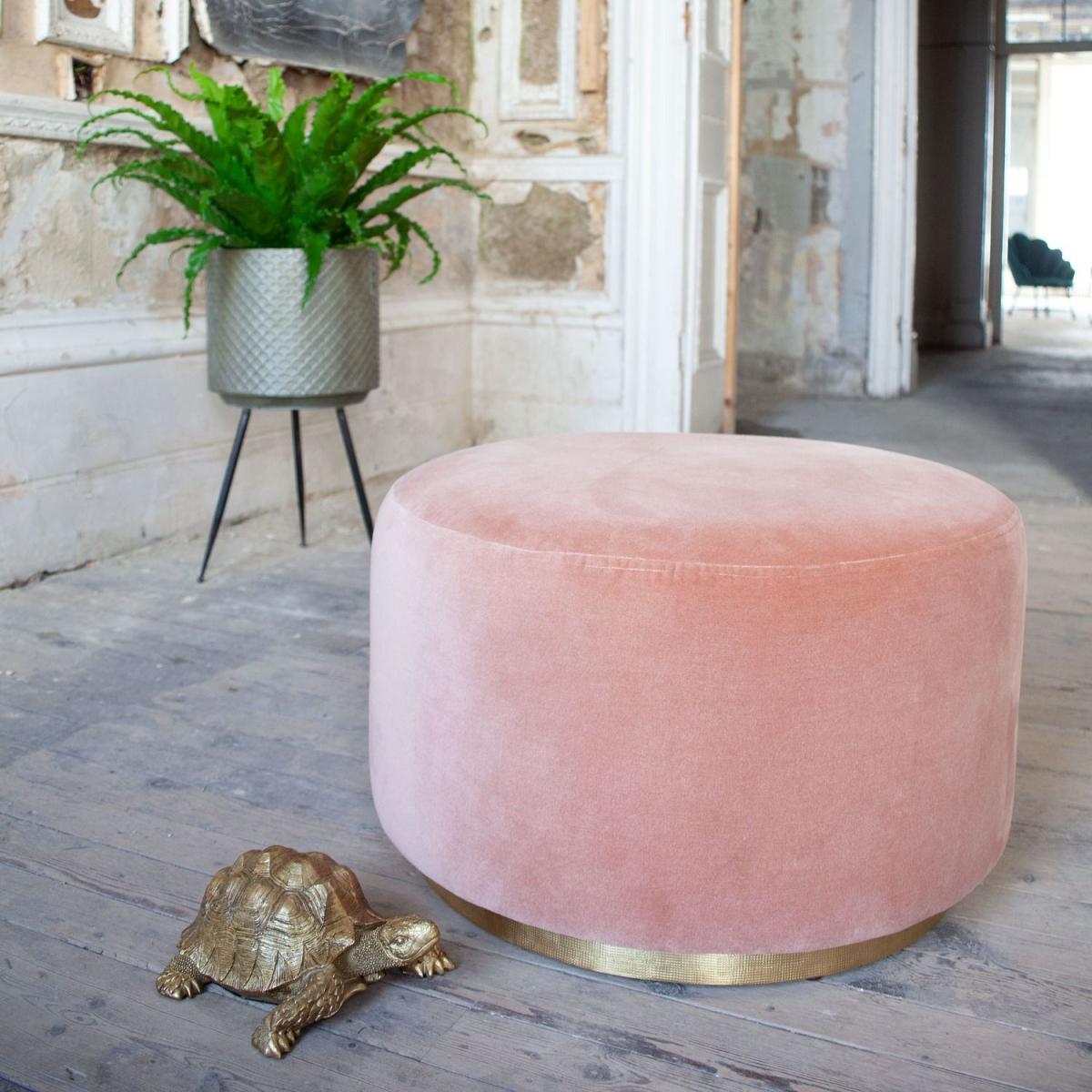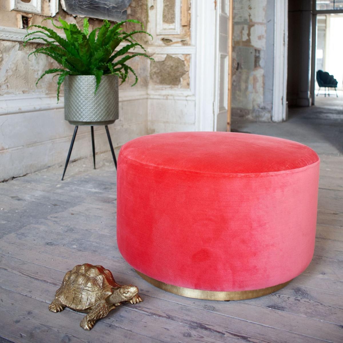 Inspired by our bestselling Sofia stools, our new velvet ottomans are lower and wider. Available in four colours with a hammered brass base.