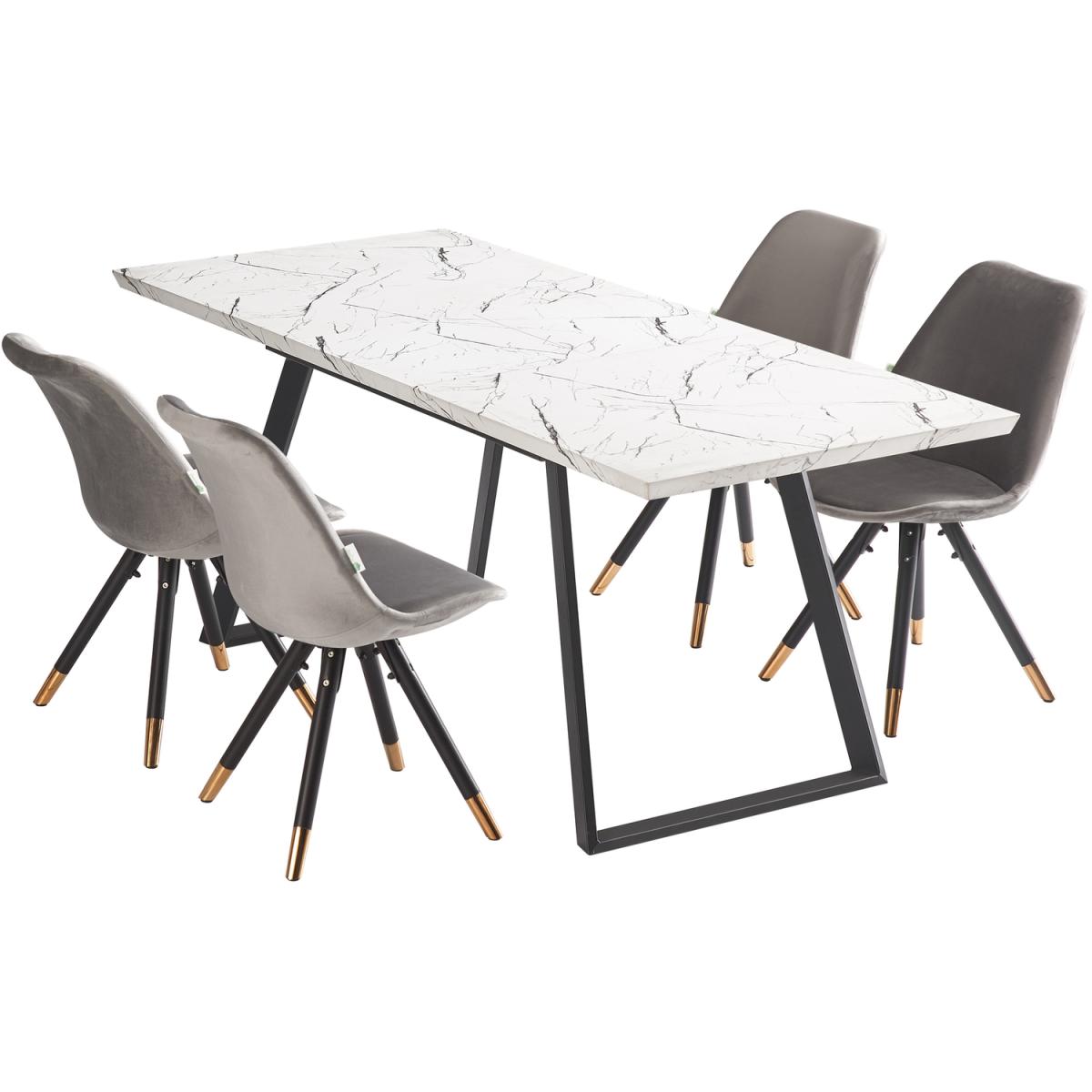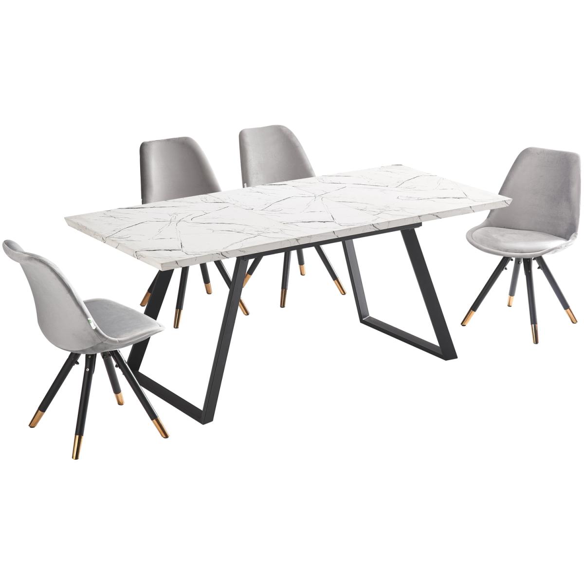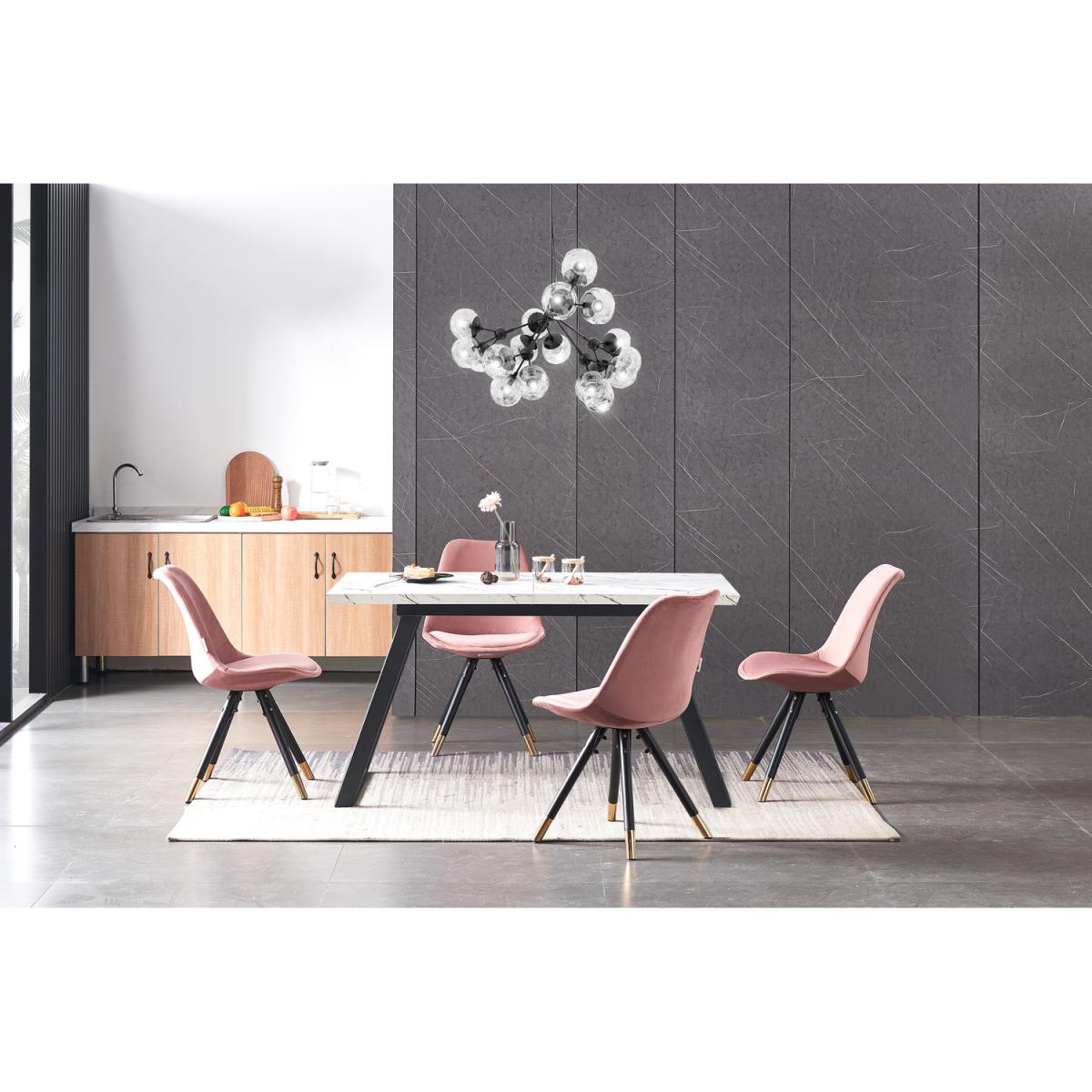 We are introducing the Sofia Toga dining set of 4 including the Toga Dining table that is extendable from 140 cm to 180 cm long giving you that extra space when you need it. Perfect whether it is a Traditional Dining set look or a Modern Dining Set look you are after. The table is supported by metal legs that provide not just sturdy support but a stunning and unique design that will get your guests talking. Comes with the Scandinavian and iconic Sofia faux leather cushioned Dining chairs, Curated with utmost care and precision to detail. The Chair features high-density foam cushioning with metal legs covered with gold end caps. The union between ergonomic construction and padded seating ensures comfort levels are premium. The style and comfort levels are simply unmatched. Modern design with simple lines complemented with delicate curves and upholstered in soft lush velvet. The dining set is ideal for the dining room, kitchen restaurant, and many more.