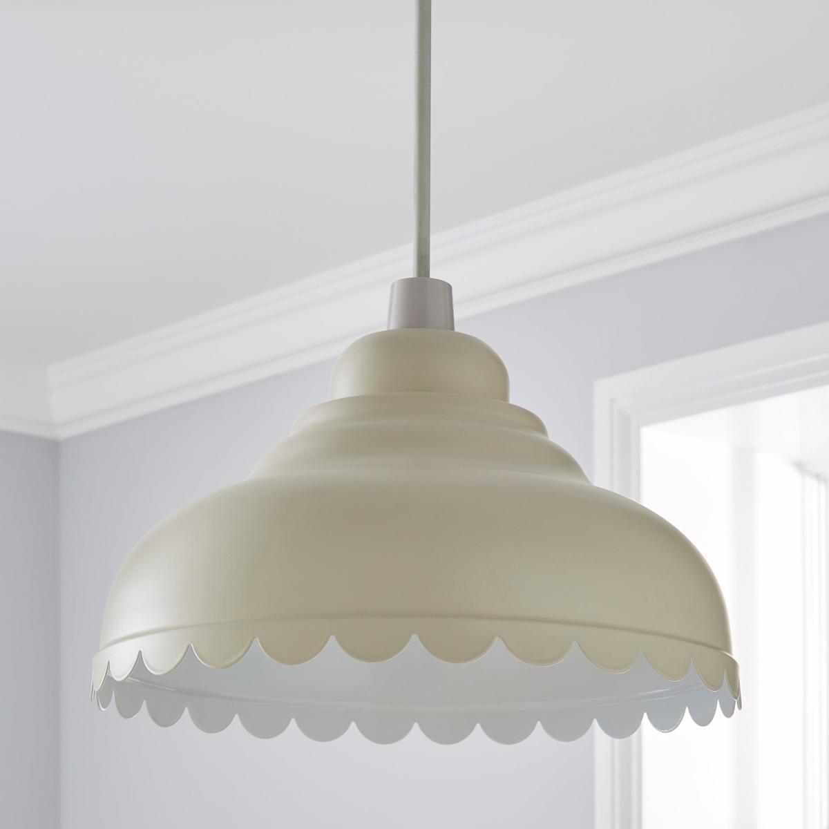 Crafted with a prett scalloped edge design, thie Sofie Easy Fit Pendant is perfect for adding a retro touch to your home. This shade is available in a choice of blush and cream satin painted finishes with a white painted inner.