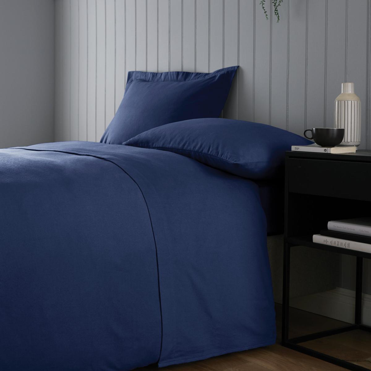 I love this navy brushed cotton sheet for its cosy, high-end feel and versatility. Its rich navy tone lends itself well to modern, nautical, or traditional interiors, pairing beautifully with both crisp whites and earthy tones. It’s ideal for creating a calm, inviting bedroom atmosphere. Practical styling tips include layering it with textured throws or patterned cushions to add depth, and keeping other bedding minimal for a sleek look. This sheet also works well in guest rooms or holiday homes, where comfort and durability are key, thanks to its brushed cotton’s soft touch and long-lasting quality. Overall, it’s a classic, practical choice for elevating any sleep space with a touch of understated elegance.