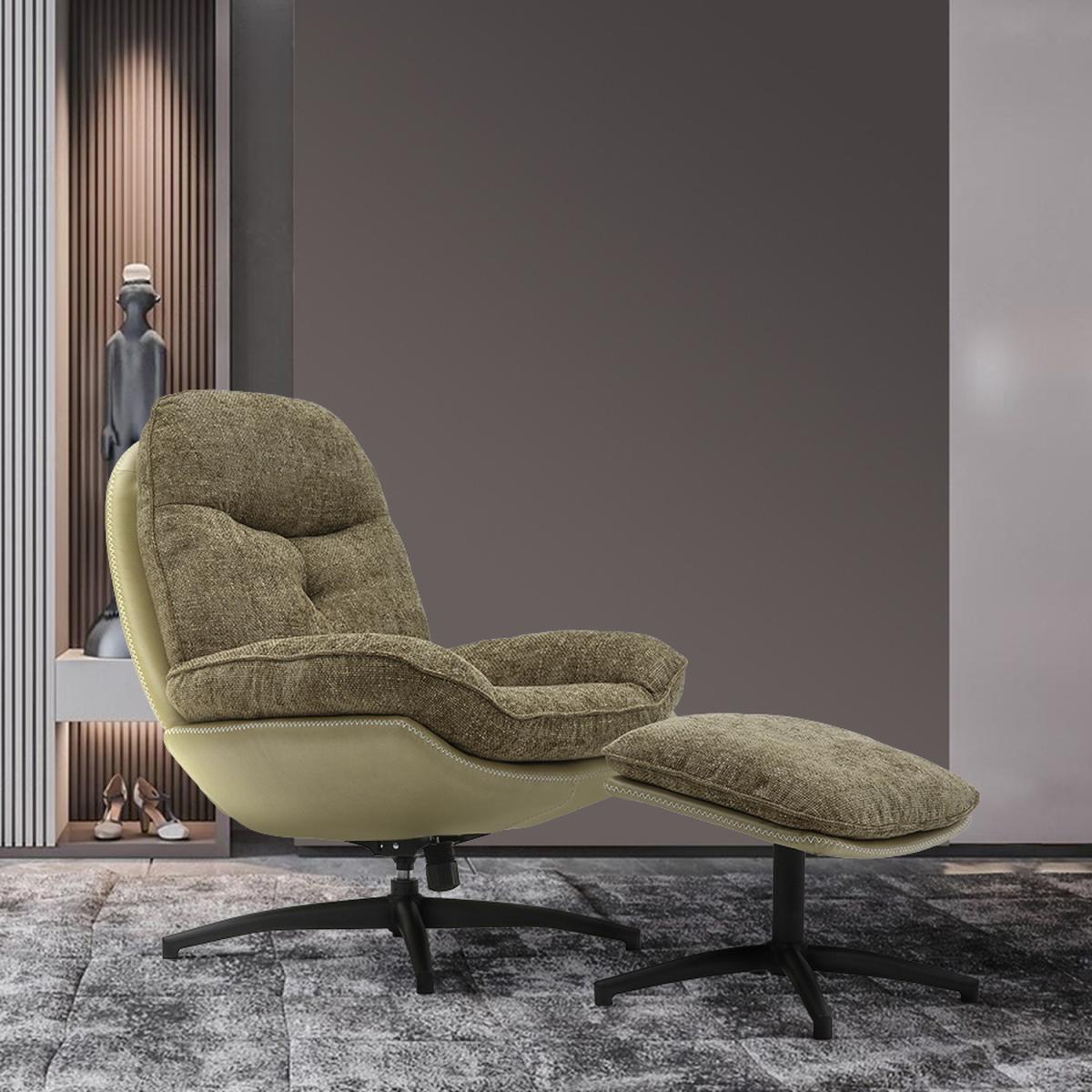 Elevate your home with the Livingandhome Lounge Chair and Footstool Set, a stylish and inviting addition to any space. Crafted with a low-scrolled arm design and sturdy metal four-legged base, this set combines both elegance and durability. Upholstered in soft and durable chenille fabric, it offers comfort and style that lasts. With its anti-deformation and wear-resistant materials, this set ensures long-lasting quality, supporting up to 300 lbs. Relax in personalized comfort with the adjustable seat, while the included footrest adds an extra touch of relaxation.