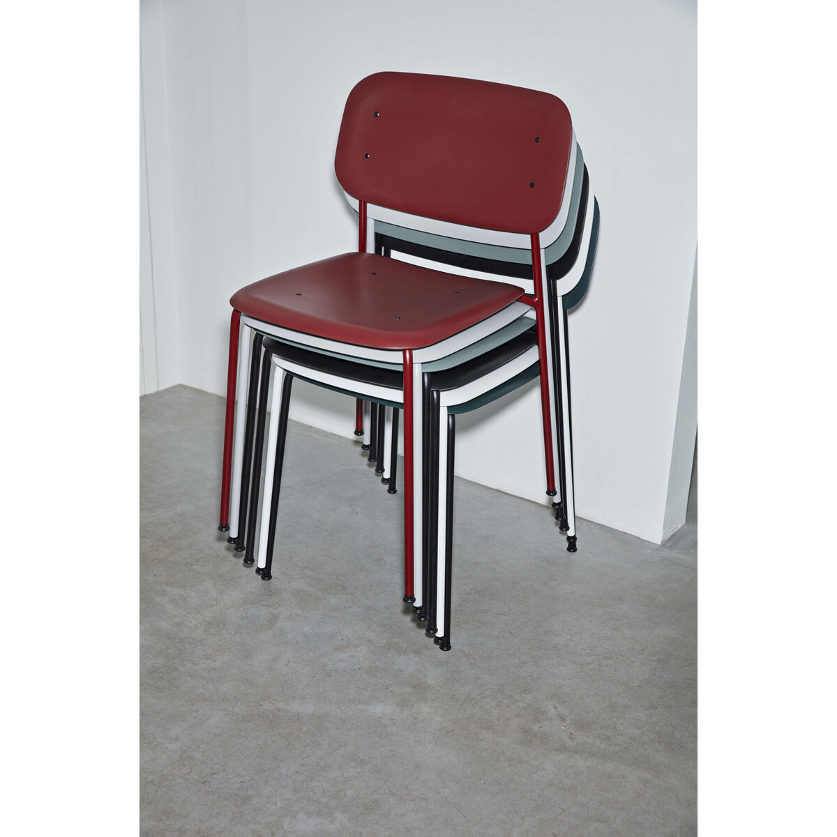 A contemporary reinterpretation of the bistro chair, Soft Edge innovates by adding soft curves that also guarantee great comfort. This chair combines an injection-moulded polypropylene seat with a thin tubular steel structure. The soft lines are accentuated by the rounded angles. The seat and back are very thin. The Soft Edge chair has all the advantages: stackable, lightweight, robust and easy to maintain.