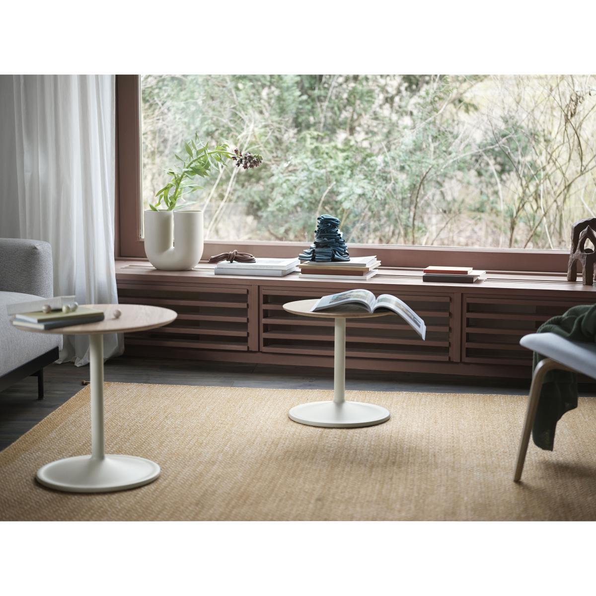 Created by Swedish designer Jens Fager, the Soft side table stands out with its central base and rounded lines. Sober and multifunctional, it will fit in anywhere: end of a sofa, bedside table, small console in the hall. It comes in a wide variety of colours and finishes (laminate, linoleum, oak) that will complement any mood, while bringing modern elegance through its clean lines and slender shape.