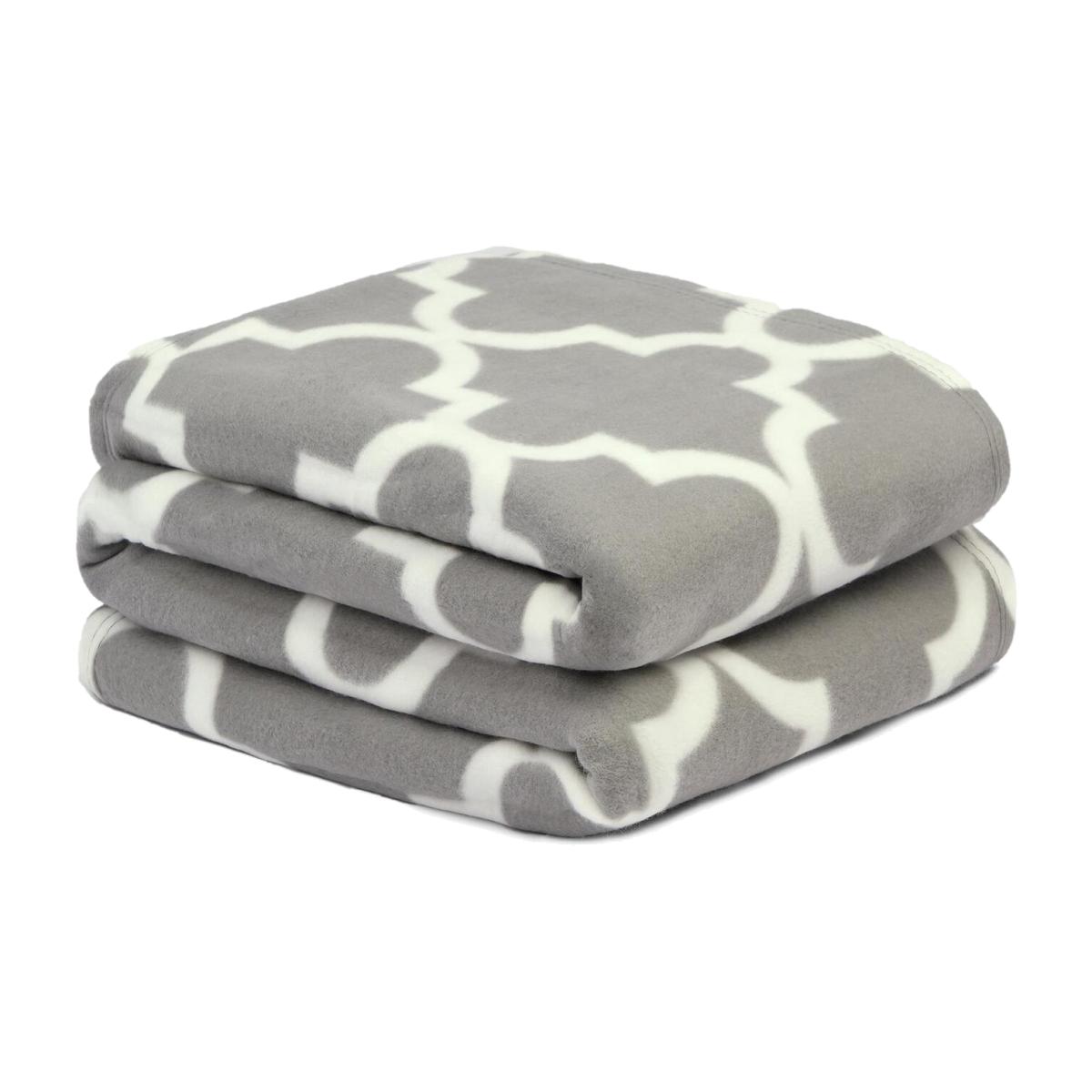 Soft Geo Trellis Print Polar Fleece Throw - Dark Grey