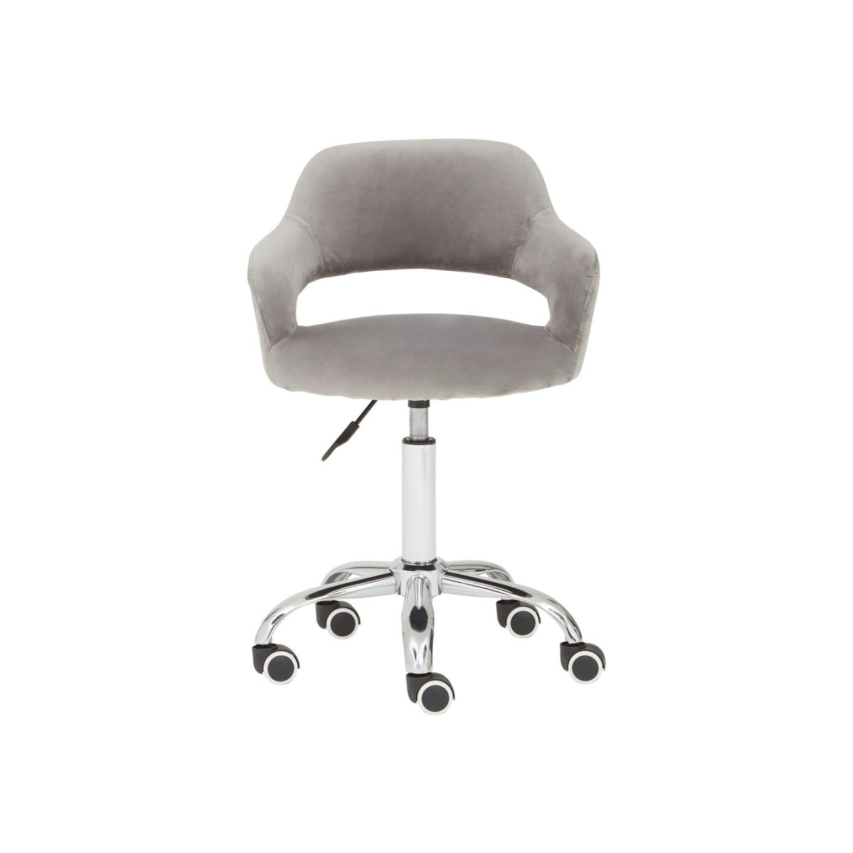 Perfect for working from home, this grey velvet office chair has curved, hollow back with low armrests supporting the round seat. The chair has claw design chrome base with hooded castor wheels for a swift movement. Self Assembly Required. Product Dimensions: 94cm x 50cm x 51cm Seat Height: 48cm. Please remember to measure your available space before ordering. Packaged Dimensions:Weight 7.5 KG, Length 61cm, Width 51cm, Height 31 cm. This product will be dispatched by one of our trusted suppliers. You’ll be contacted by their selected courier about your delivery.