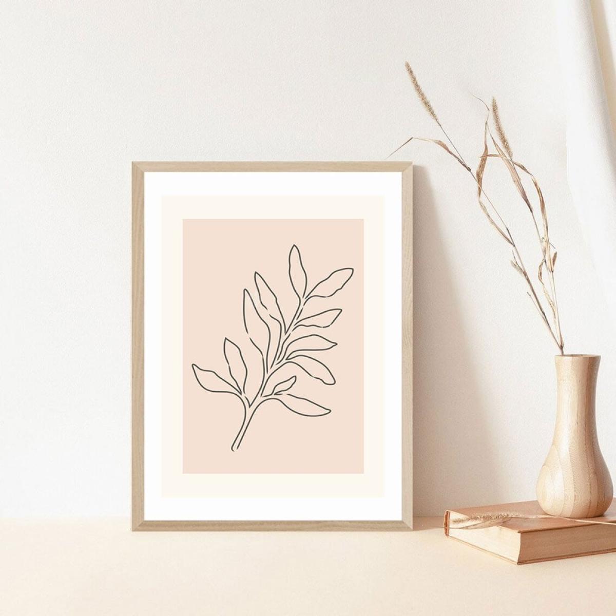 This delicate line drawing of a leafy stem brings a sense of calm into your living room or bedroom. Ideal for Nordic design lovers, place leaning on your chest of drawers surrounded by houseplants. Only giclée printing processes are used for this print resulting in the highest quality museum-level colours and sharpness. Choose between a number of different coloured frames and three sizes for the perfect print for your space.
