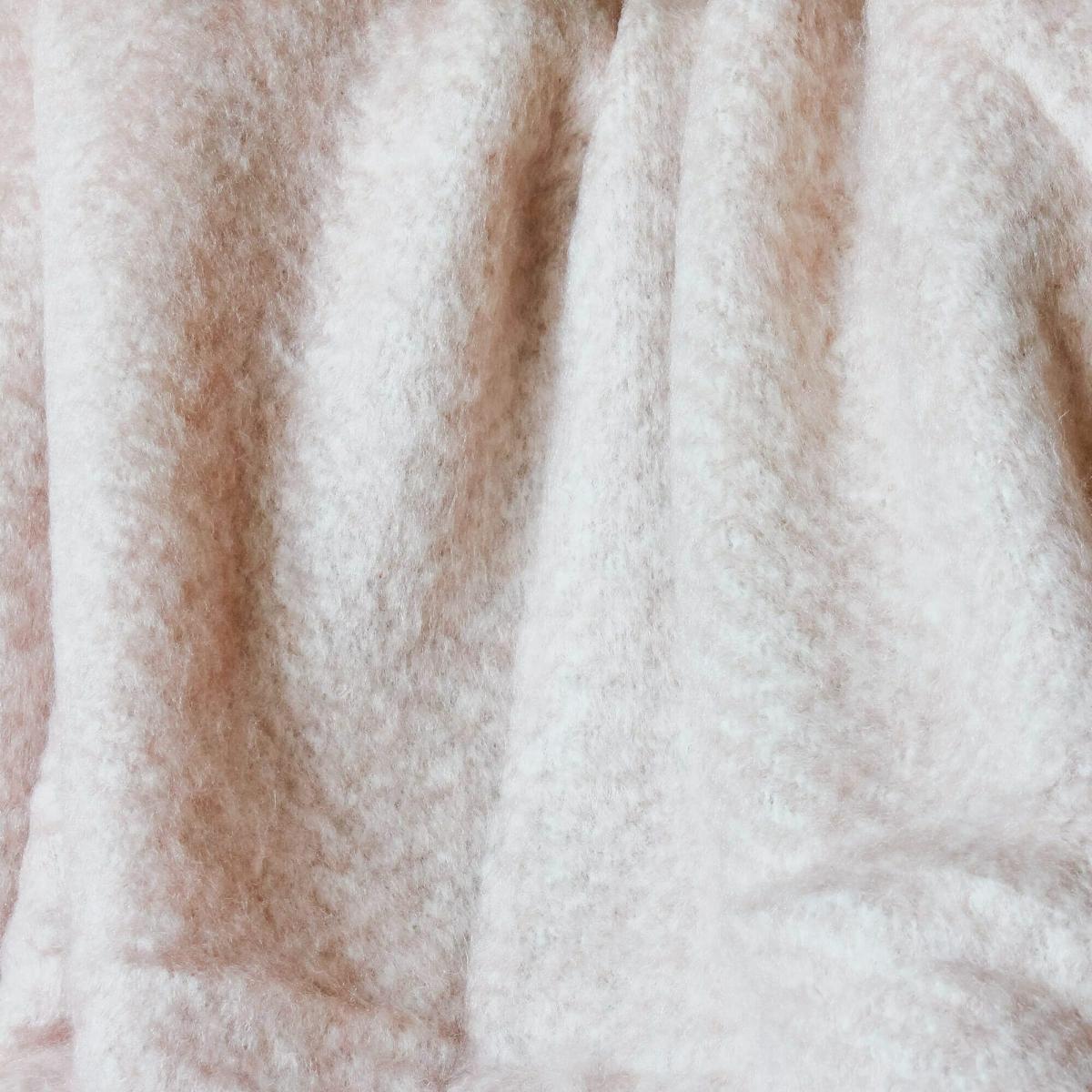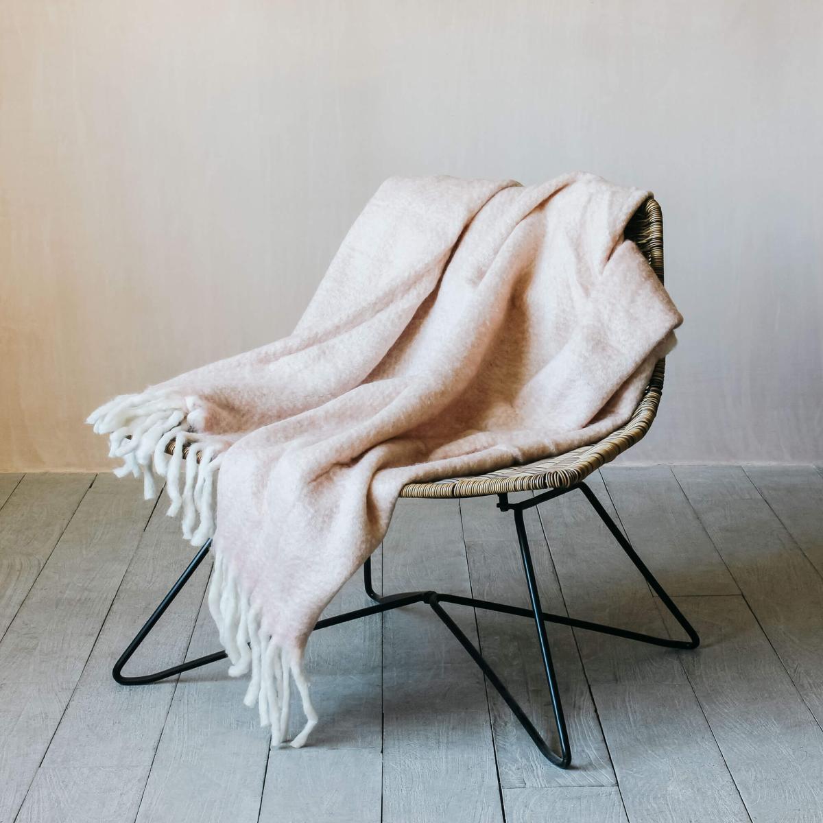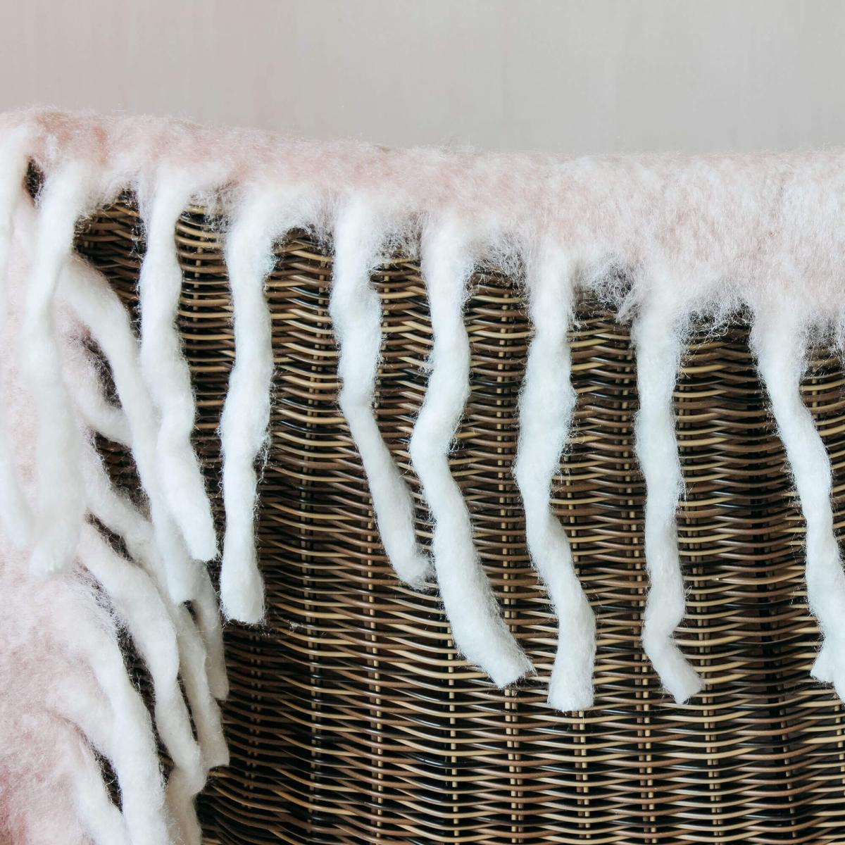 Cocoon yourself in the softest pale pink throw with fringed edges, the perfect cosy addition to your favourite armchair.