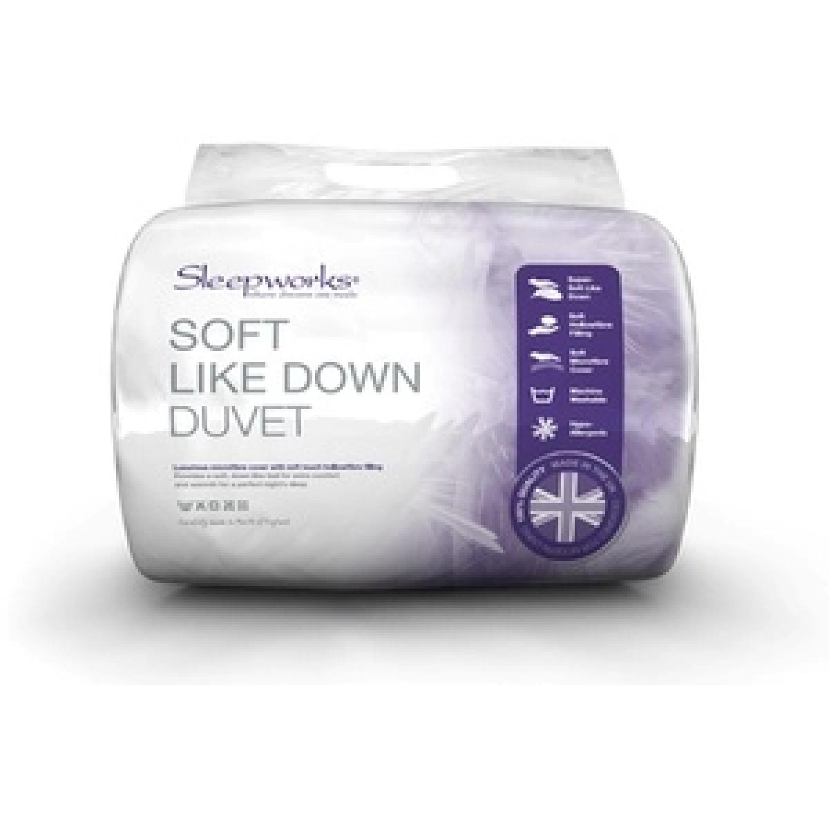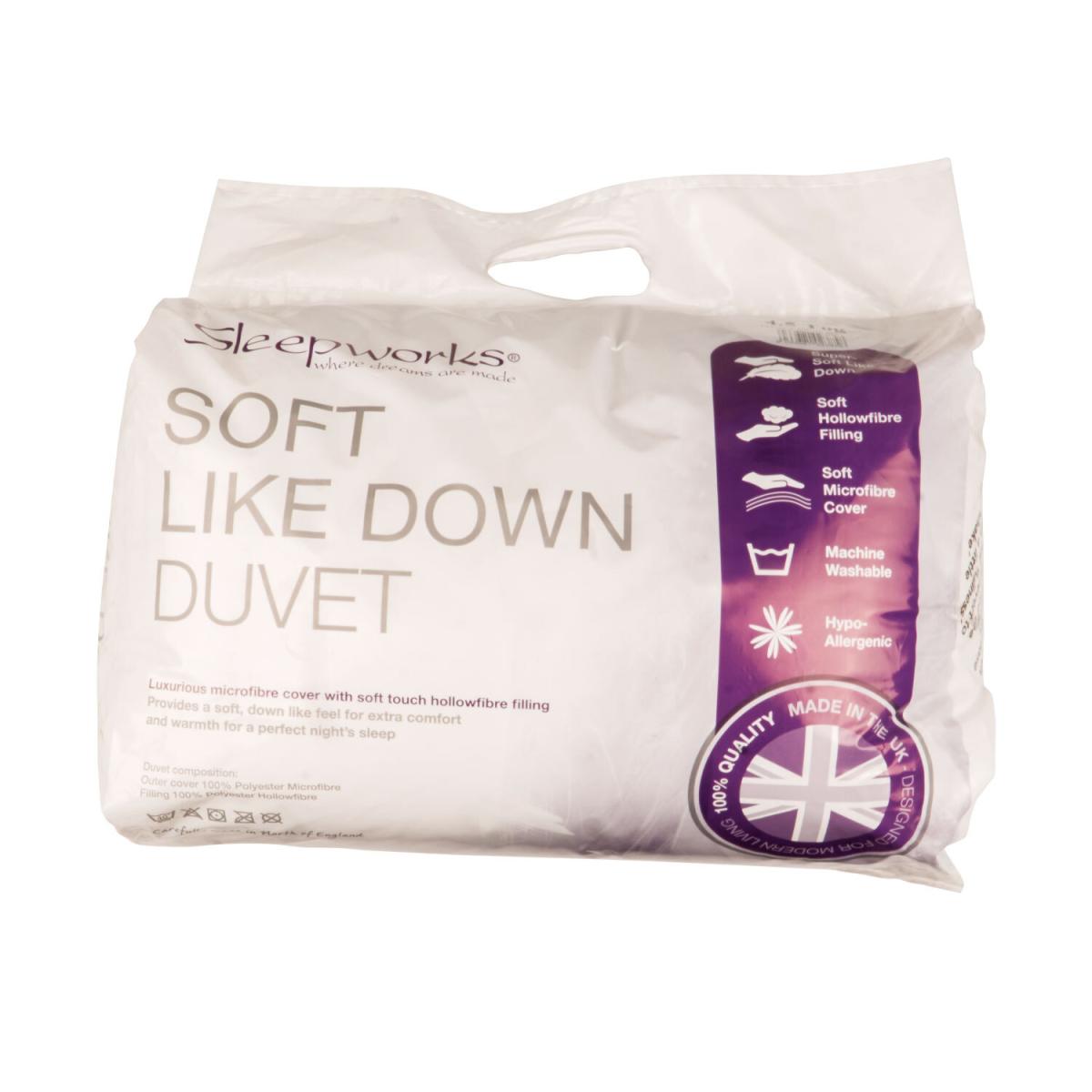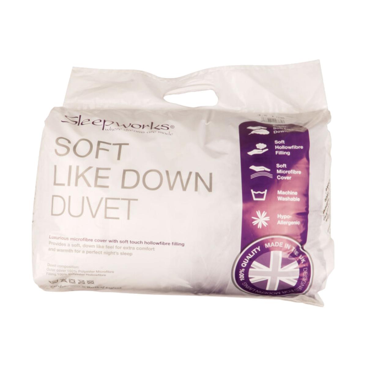 Experience the divine comfort of Sleepworks' Soft Like Down 4.5. Tog Duvet, featuring soft-touch hollow fibre filling and luxurious microfibre cover. Machine washable and hypoallergenic, this 4.5 tog duvet is perfect for keeping you snug while you sleep during the warmer summer and spring months.