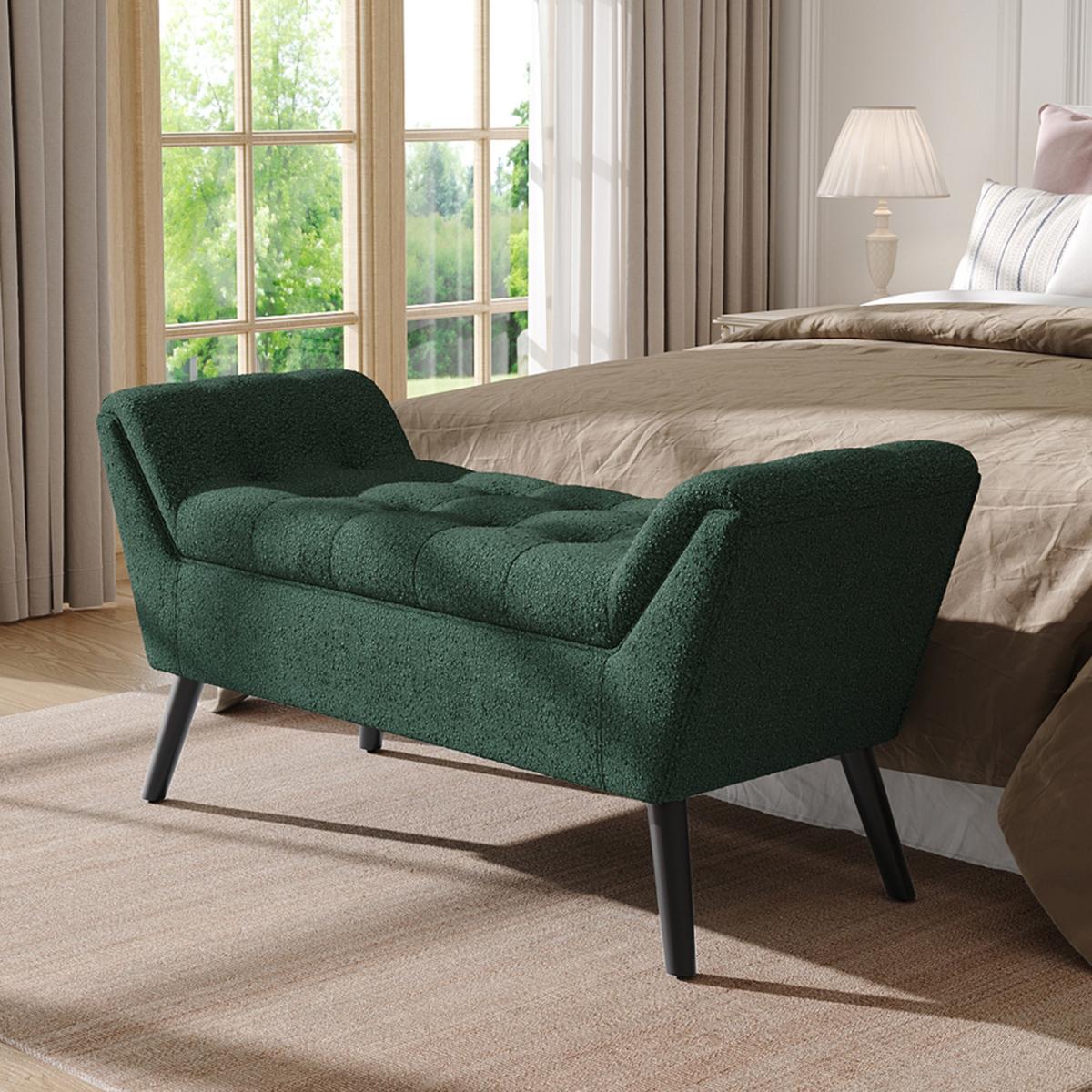 Soft Linen Upholstered Bench with Wooden Legs - Green