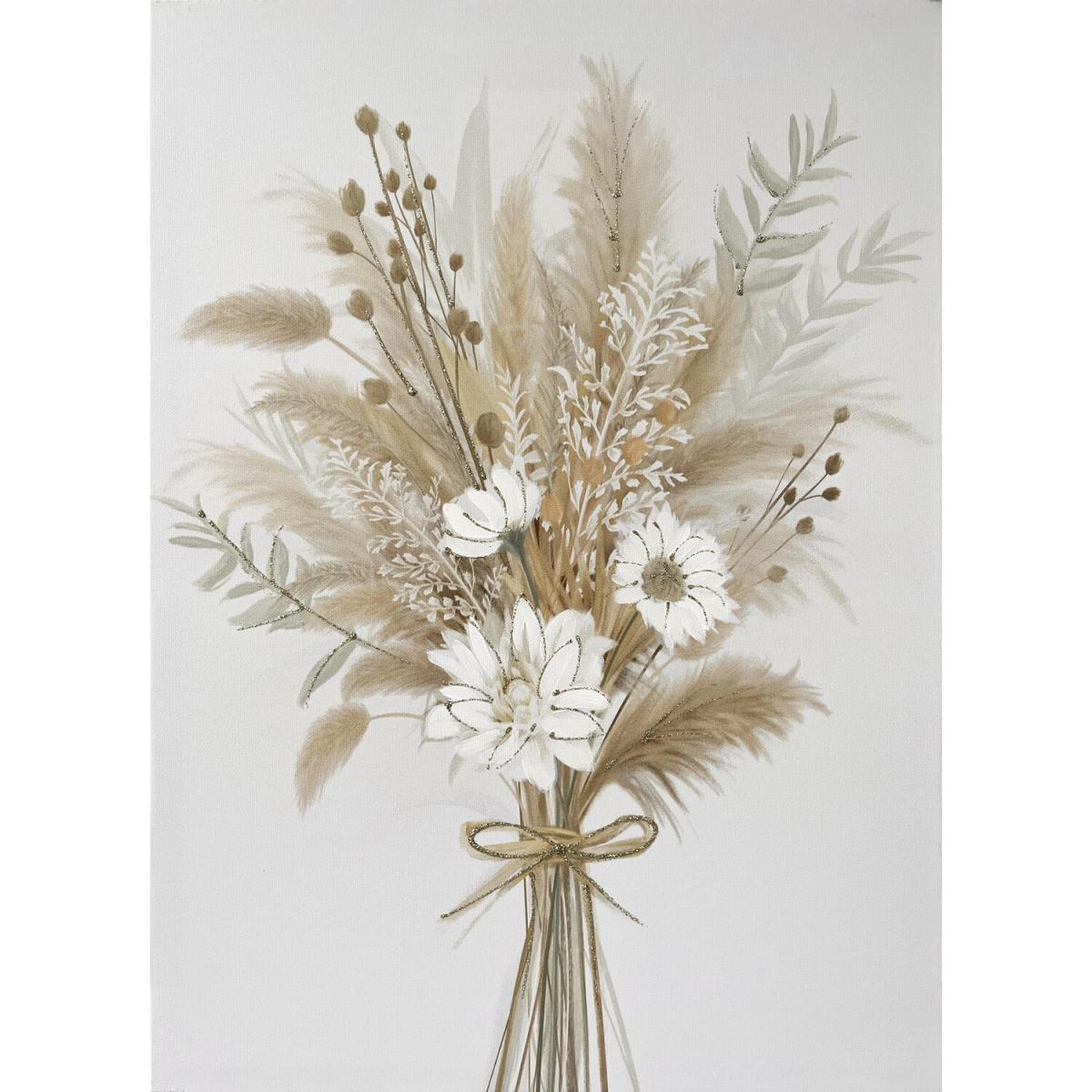 Gentle and elegant in design, this Soft Pampas Glitter Canvas will add a charming finishing touch to your space. The canvas features a rustic pampas bouquet complete with floral accents and embellished with gorgeous golden glitter all in pastel tones for a beautiful wall centrepiece. Featuring hooks for easy hanging, this canvas is a lovely choice when it comes to decorating your living room, bedroom, or hallway.