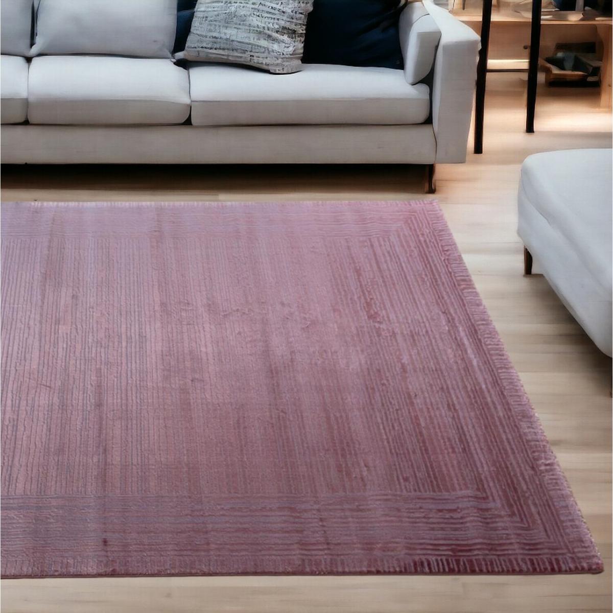 Soft Pink Living Room Rug Carved Geometic Bordered Area Rug - Pink / 120cm