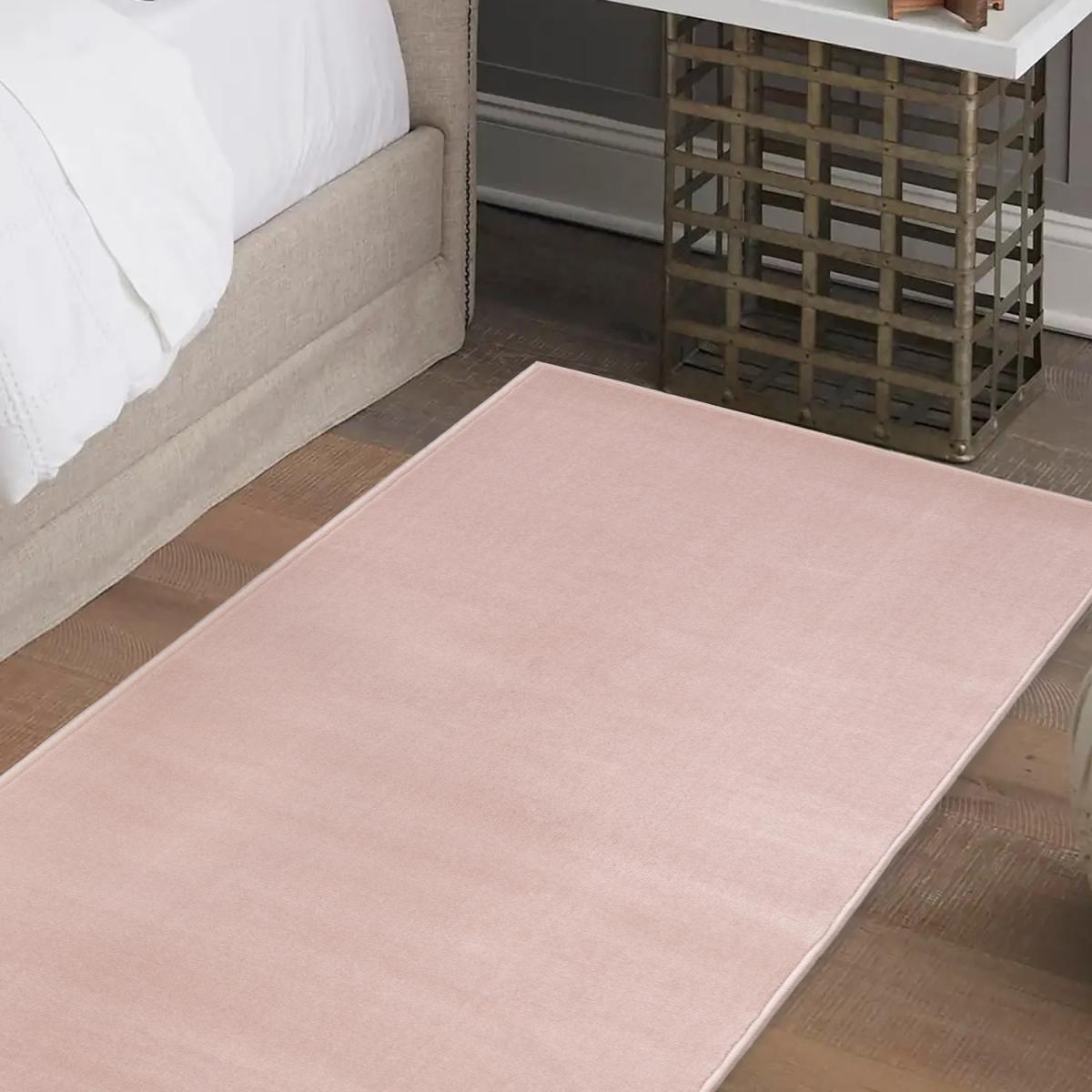 Soft Pink Solid Flatweave Living Room Rug - Inishmore - Pink / 80cm