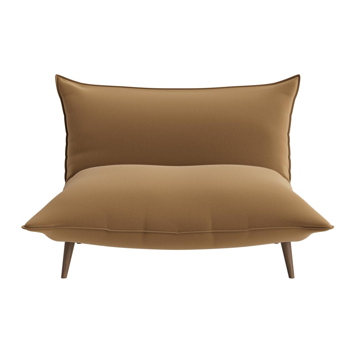 With a generously filled, pillowy seat and back, this armless chair is made for curling up on. French seams add a tailored touch, while the tapered legs give it a floating-above-the-floor feel