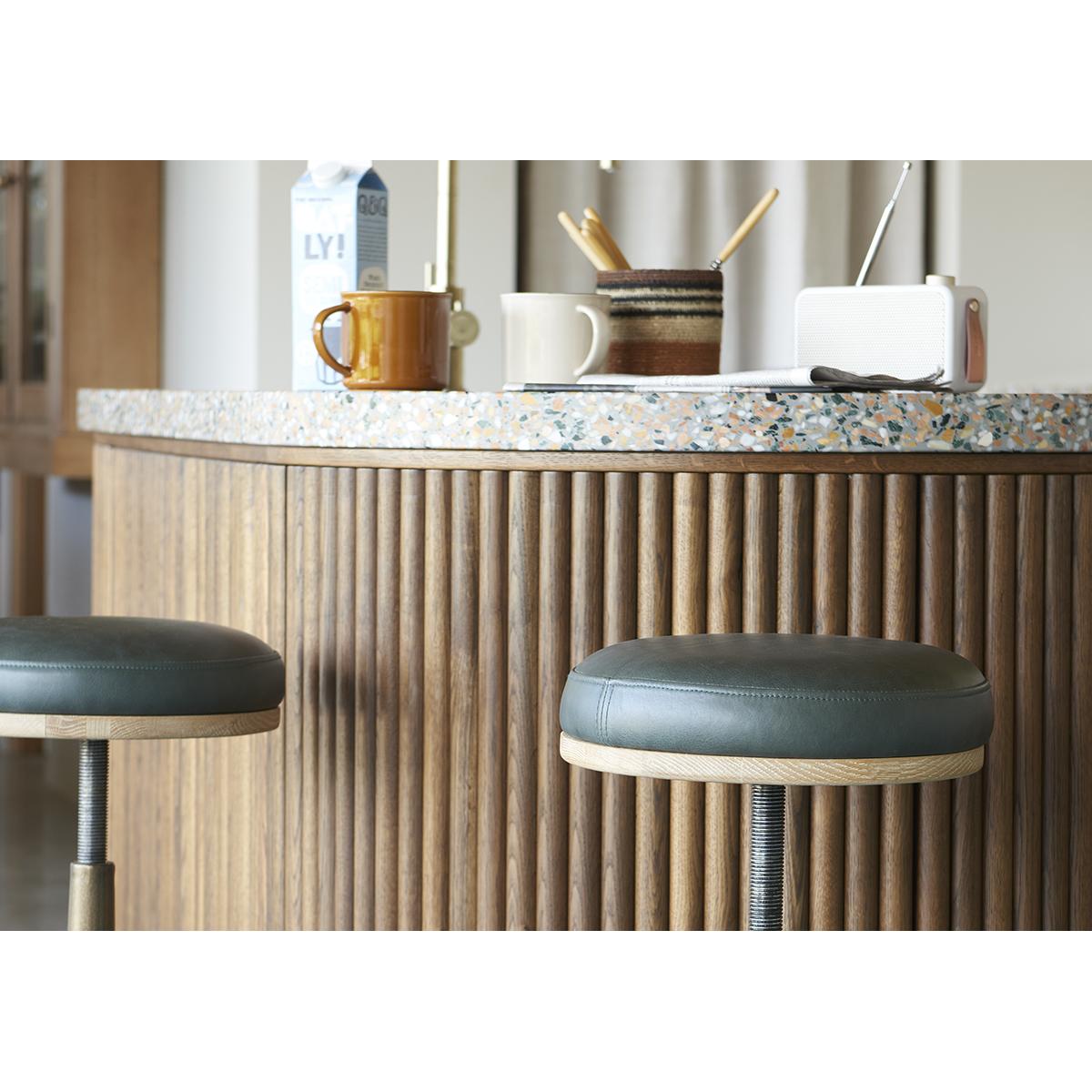 We think the combination of leather, oak and brass makes this diner-inspired stool very cool.