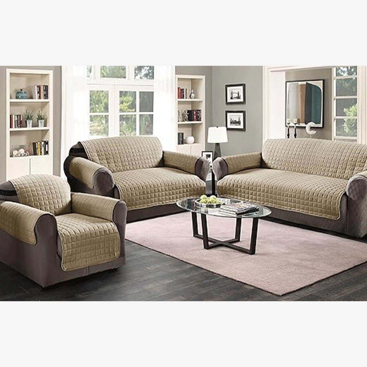 Soft Touch Sofa protector. Enhance the longevity of your sofas using the Velosso Water Repellent Sofa Protectors. Effortlessly guard your furniture against bothersome spills, stubborn stains, and unsightly dirt. Our sofa protectors provide all-encompassing coverage and represent the ultimate resolution for preserving the impeccable state of your sofas. Crafted from premium microfibre fabric, these protectors are engineered for enduring strength and resilience. Boasting a water-repellent finish and properties that resist soil, you can be confident in the sustained immaculateness of your furniture. The refined square stitching featured on this protector introduces an element of refinement to your home design. With its timeless colour selection, our sofa protector seamlessly harmonizes with any living environment.