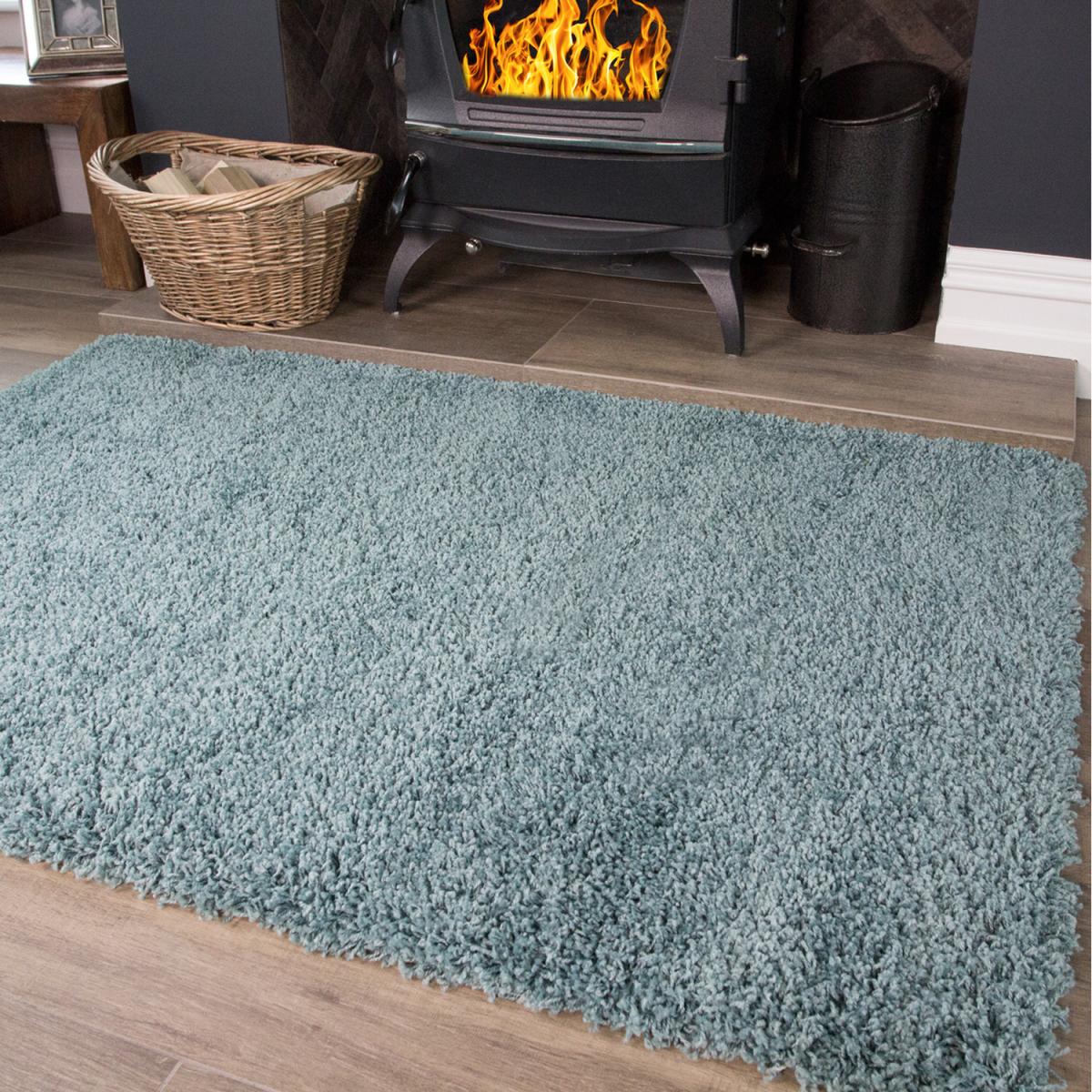 Soft Value Duck Egg Blue Shaggy Area Rug - Duck Egg Blue / 160 x 110cm