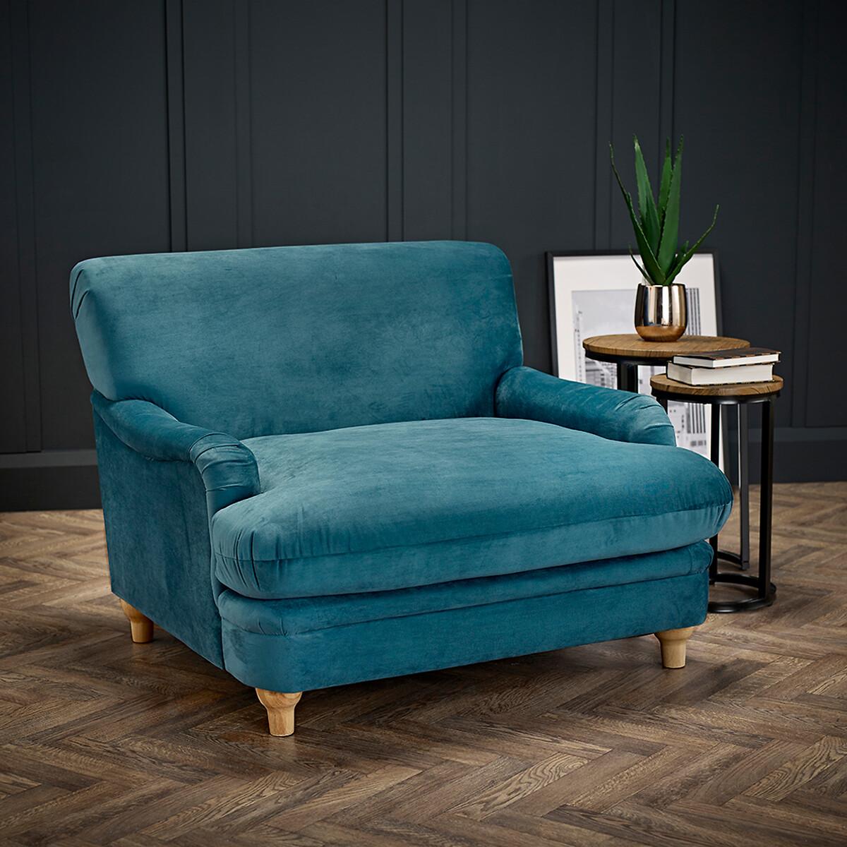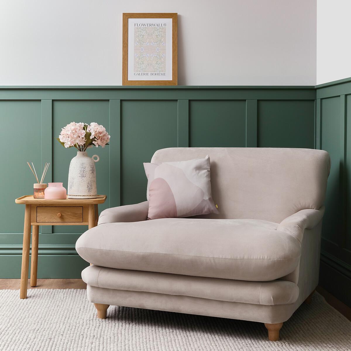 With a wide cushioned seat and upholstered in soft velvet material, this gorgeous velvet loveseat is the perfect place to get cosy. Product details. Velvet upholstery Light wood turned legs. English roll top arms. Rolled headrest. This chair requires some assembly, legs and fittings can be found under the seat pad. Free Swatch Service We offer a FREE swatch service. Email laredoute@lpdfurniture.co.uk with your name and address, along with the range name, Ref and colour choice. Your swatches will be delivered within 5 working days (subject to availability).Product Dimensions: 109cmx106cmx84cm. Seat Height: 55cm. Please remember to measure your available space before ordering. Packaged Dimensions: 77cmx 65cmx 53cm Weight: 25kg. Composition: Upholstered with a wooden frame. Please note: this product cannot be be delivered to all Offshore Islands Northern Ireland or Republic of Ireland. This product will be dispatched by one of our trusted suppliers. You’ll be contacted by their selected courier about your delivery.